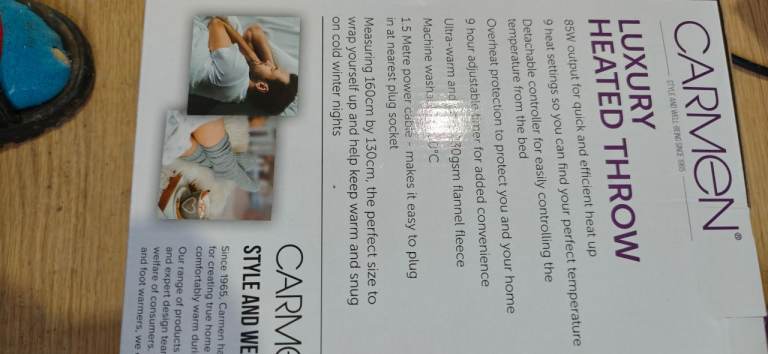 Carmen luxury heated throw, 9 heat settings, this measures ( 160 x 130 cm ) it has a heap of quality settings,