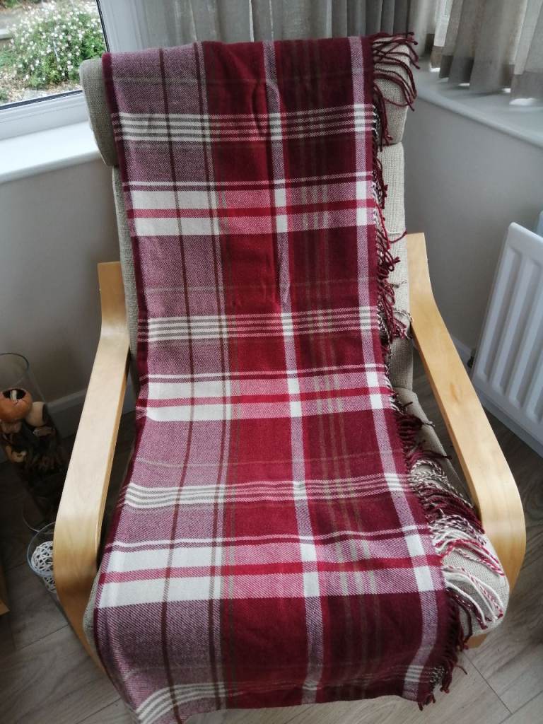 RED CHECK LARGE THROW - 186 cm SQUARE - AS NEW