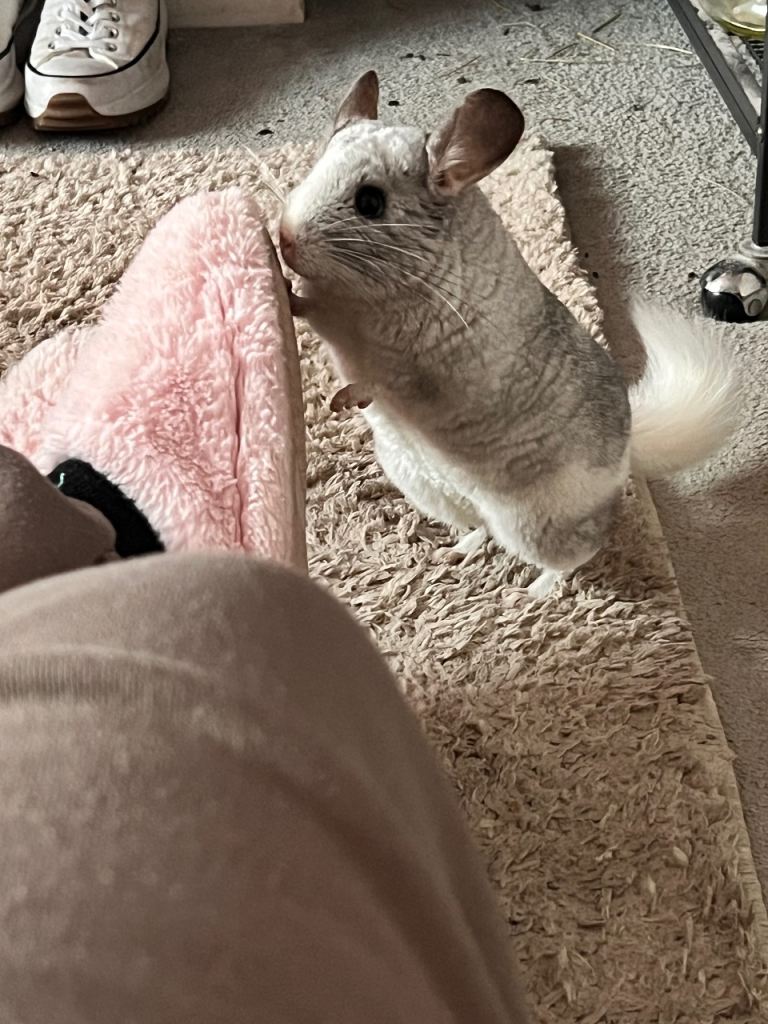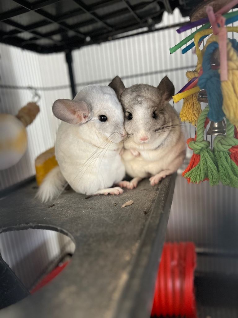 I am having to sell my two male white/grey chinchillas due to not having much room as pregnant beautiful chinchillas the pure white one does like to be held then other one is abit shy when first out but loves to be running around out of the cage good with children collextiononly will need to see the cage set up before letting them go and you need to have the knowledge of how hard these are to keep