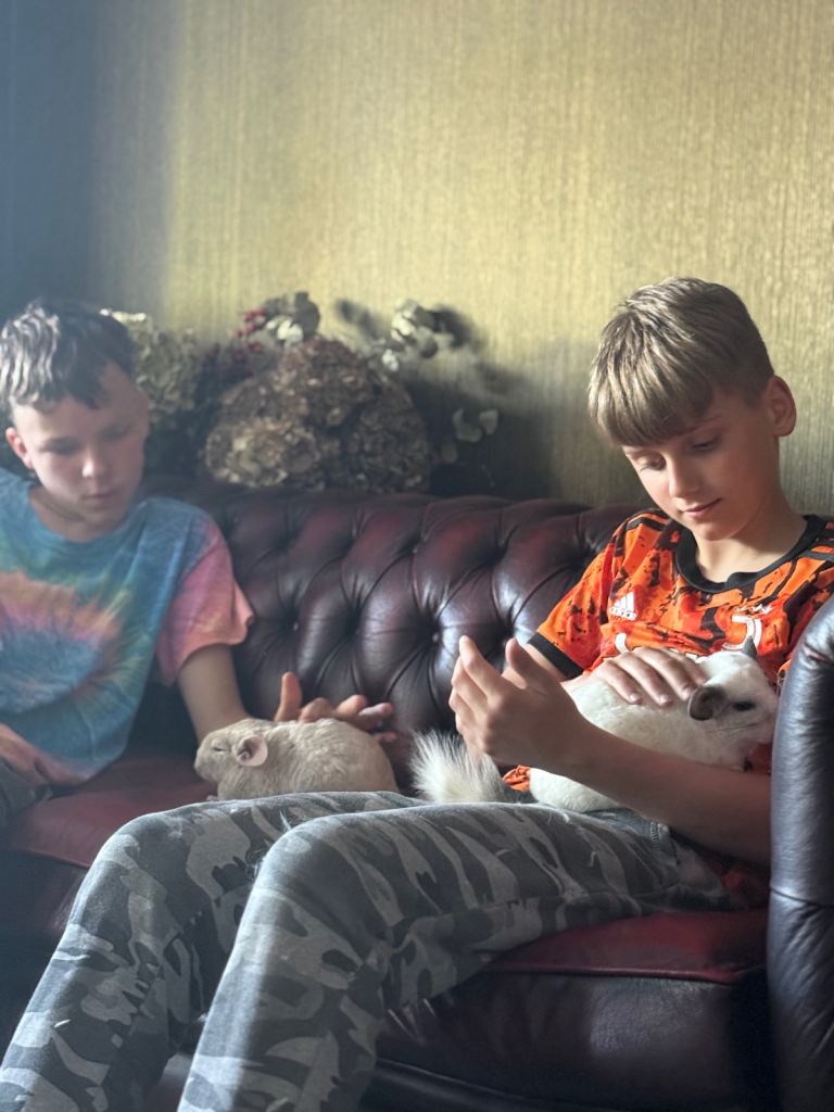 Two chinchillas, along with their cage and accessories, both spayed. Very sociable, accustomed to playing with children, they love being petted and the company of people. One is an albino.