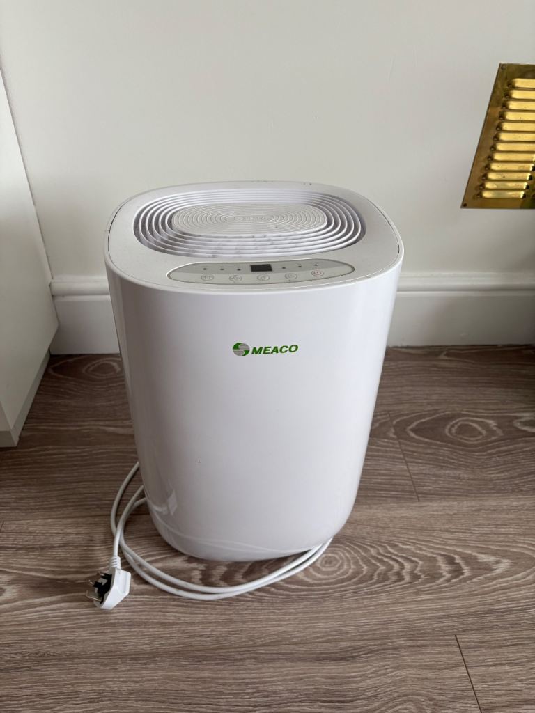 Dehumidifier used in mid sized bedroom. It improves room environment, lowers humidity, prevents building up of mould, etc. It also has dust filter.