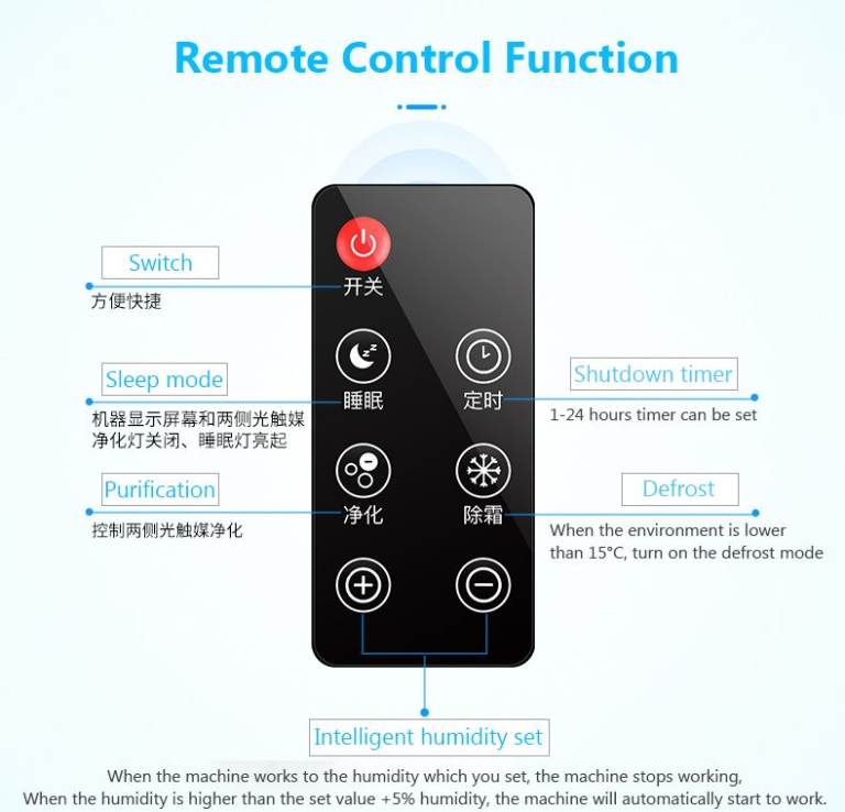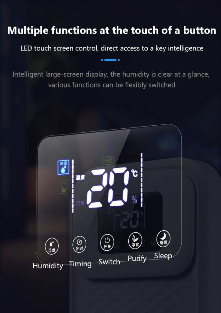 Function: Constant Humidify Setting/LED Display/Timer Switch/Sleep Mode/Photocatalyst Purification/Two Drainage Methods