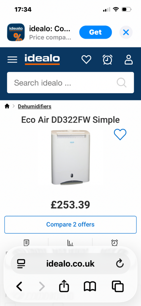 Best dehumidifier on the market-EcoAir. Very effective at reducing water content in the air. Similar models cost between £250 and £300. Collection in N1 Islington. Bargain.