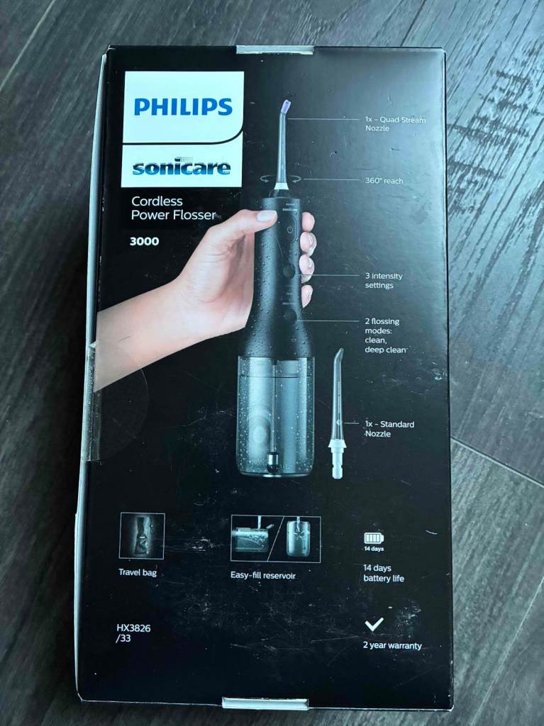 This Philips Sonicare Power Flosser 3000 comes with all but one nozzle and is in excellent, like new condition. Used a handful of times since purchase in late March 2025.