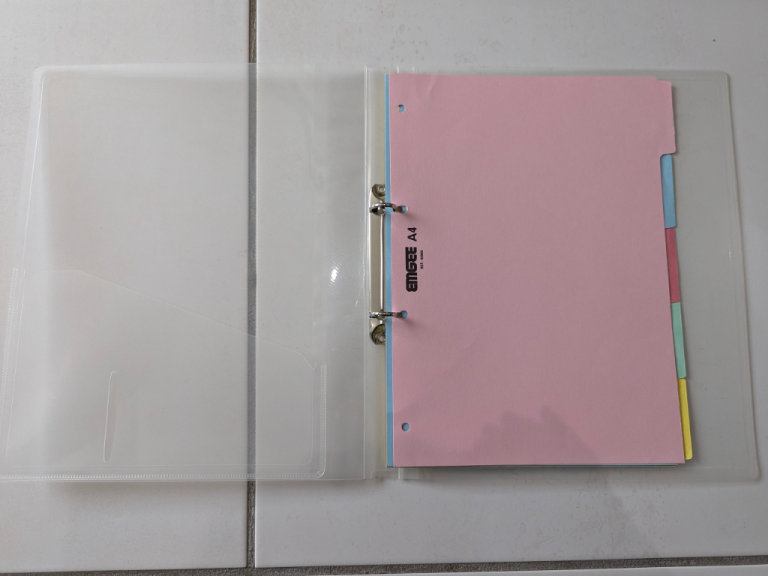 * Snopake clear plastic A4 ringbinder with 5 card dividers