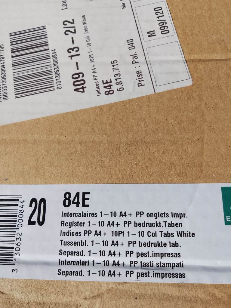 Box of File dividers A4