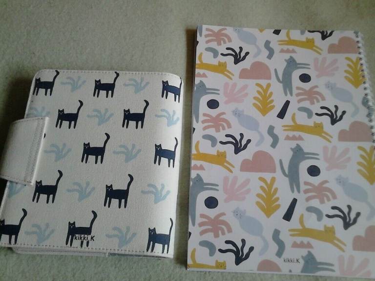On offer s this new kikki.K B6 Personal planner and lined notebook (Vanilla Back to School cat blue)