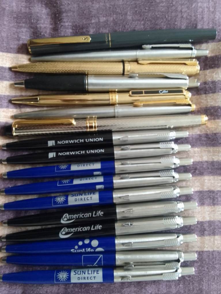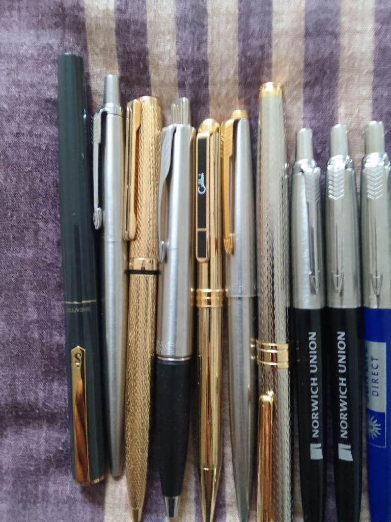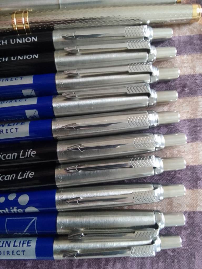 Parker pens, messenger, other collectable pens (7) items and (10) free Parker pens new unused
