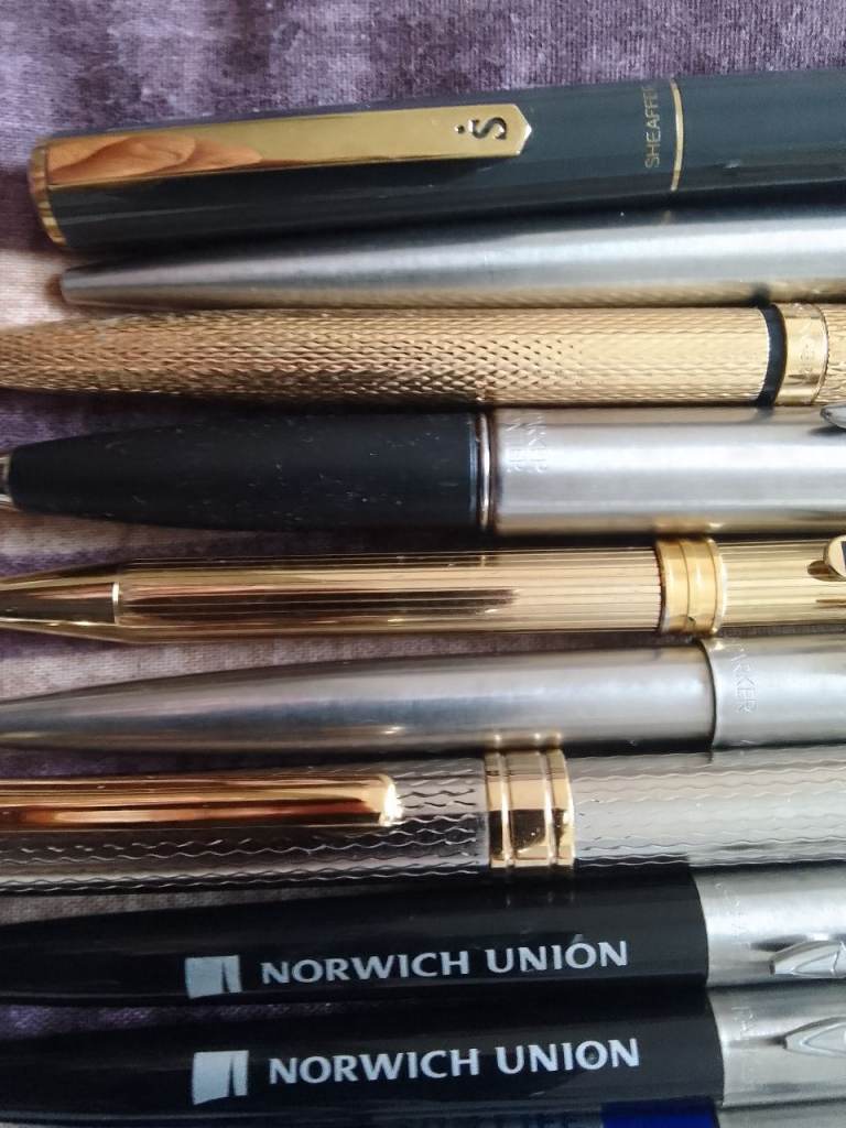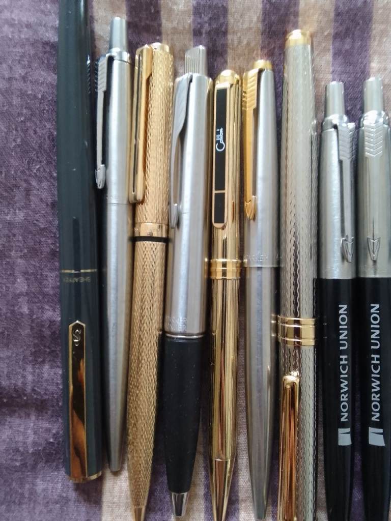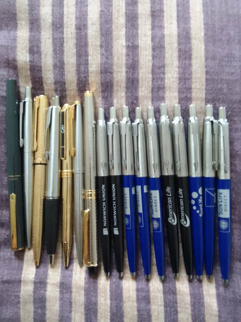 Parker pens, messenger and other collectable pens total of (7) items and (10) free Parker pens brand new unused email text phone Ali on