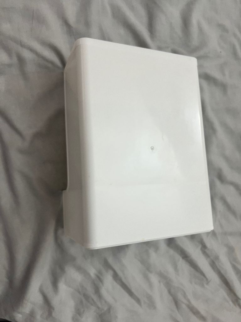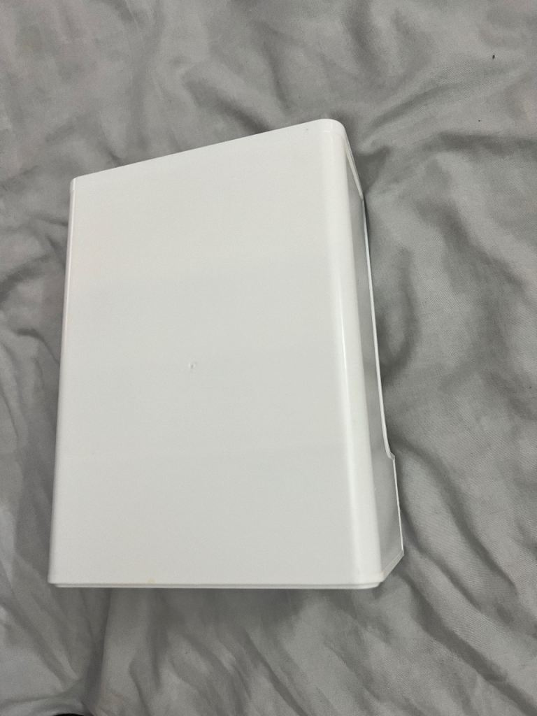 White multi-compartment desk organiser / storage caddy with removable clear drawer.