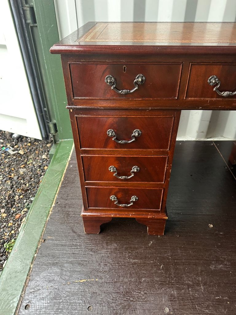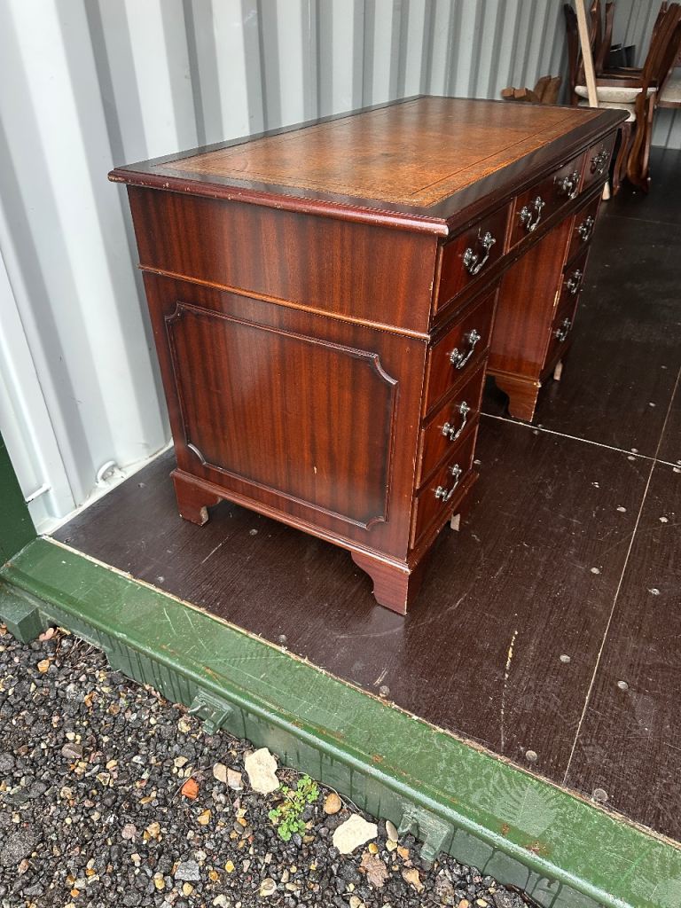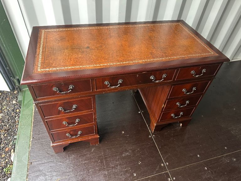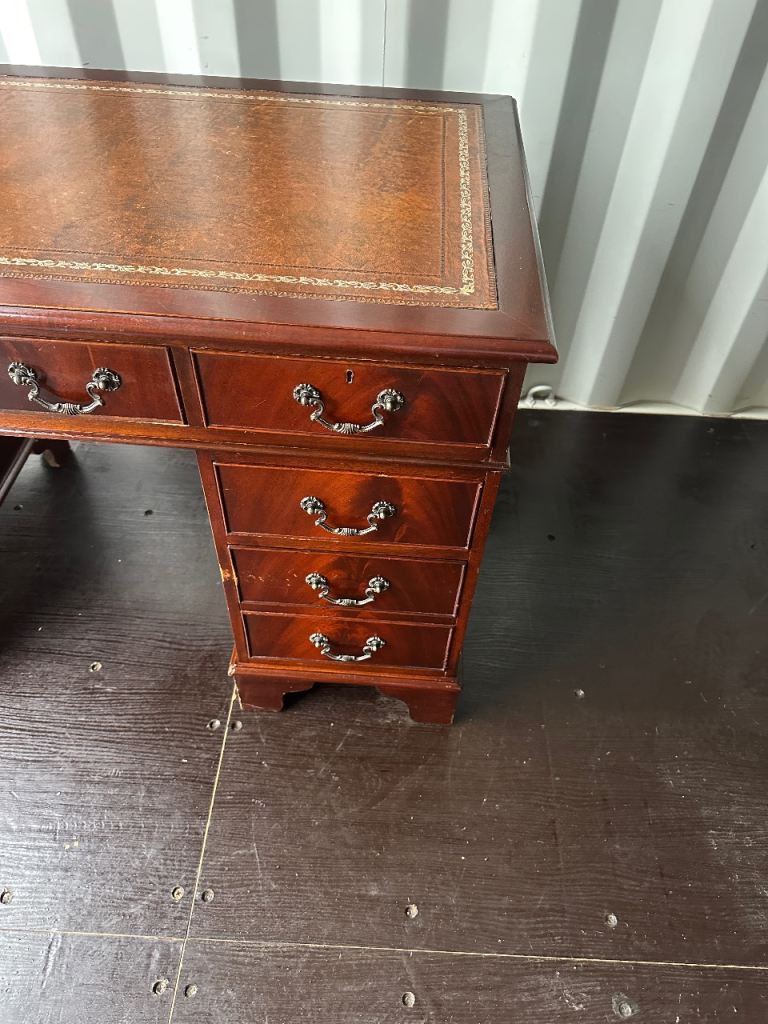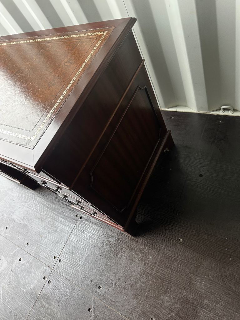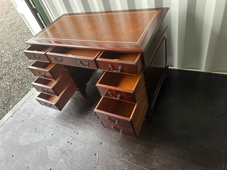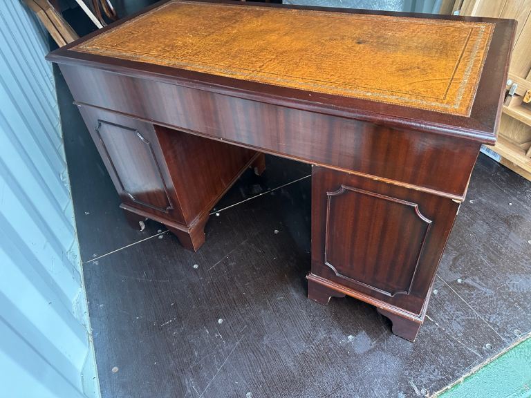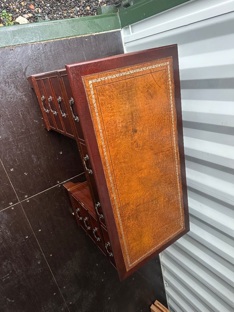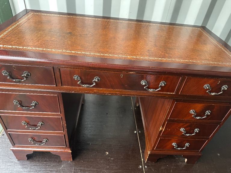 Antique Style Captains Bankers Desk Tan Brown Leather Twin Pedestal Partners #45