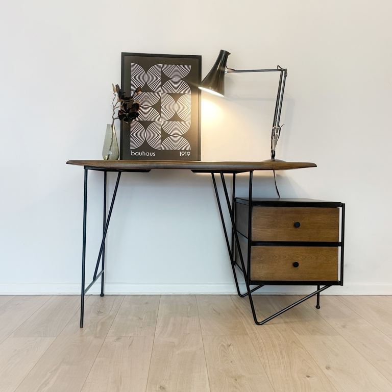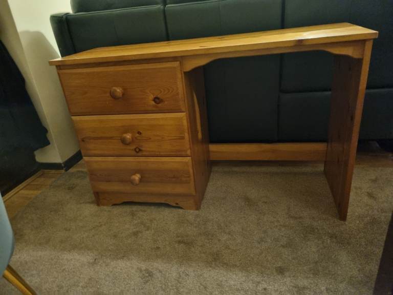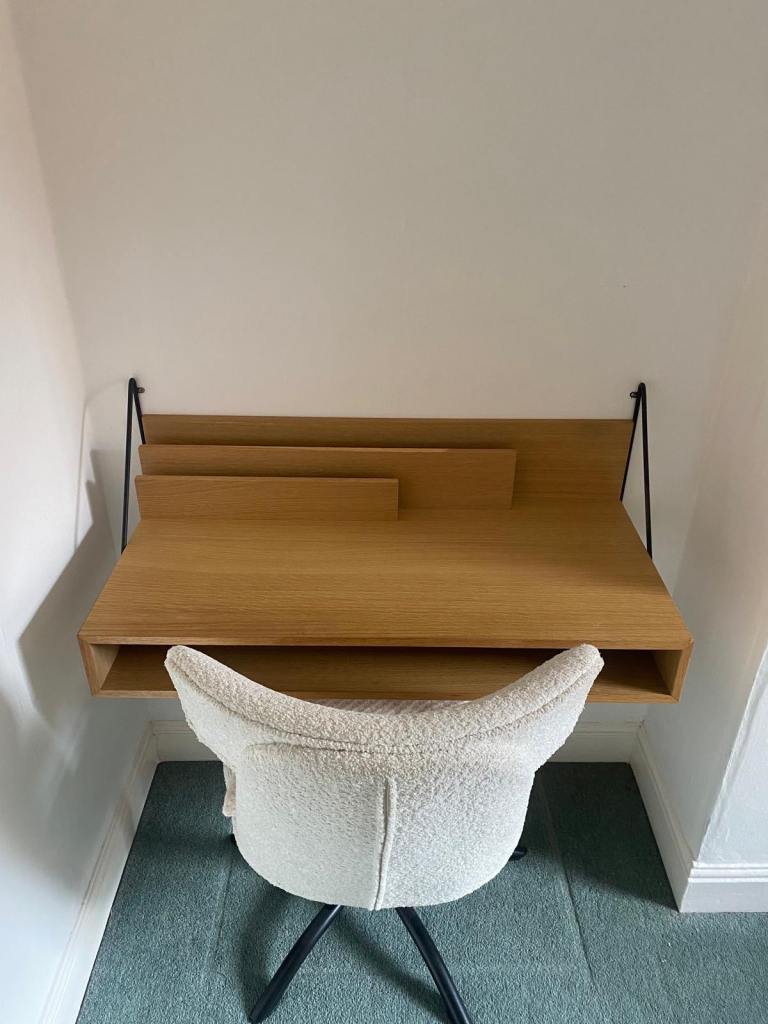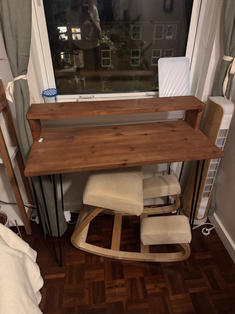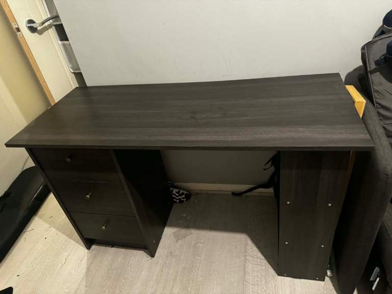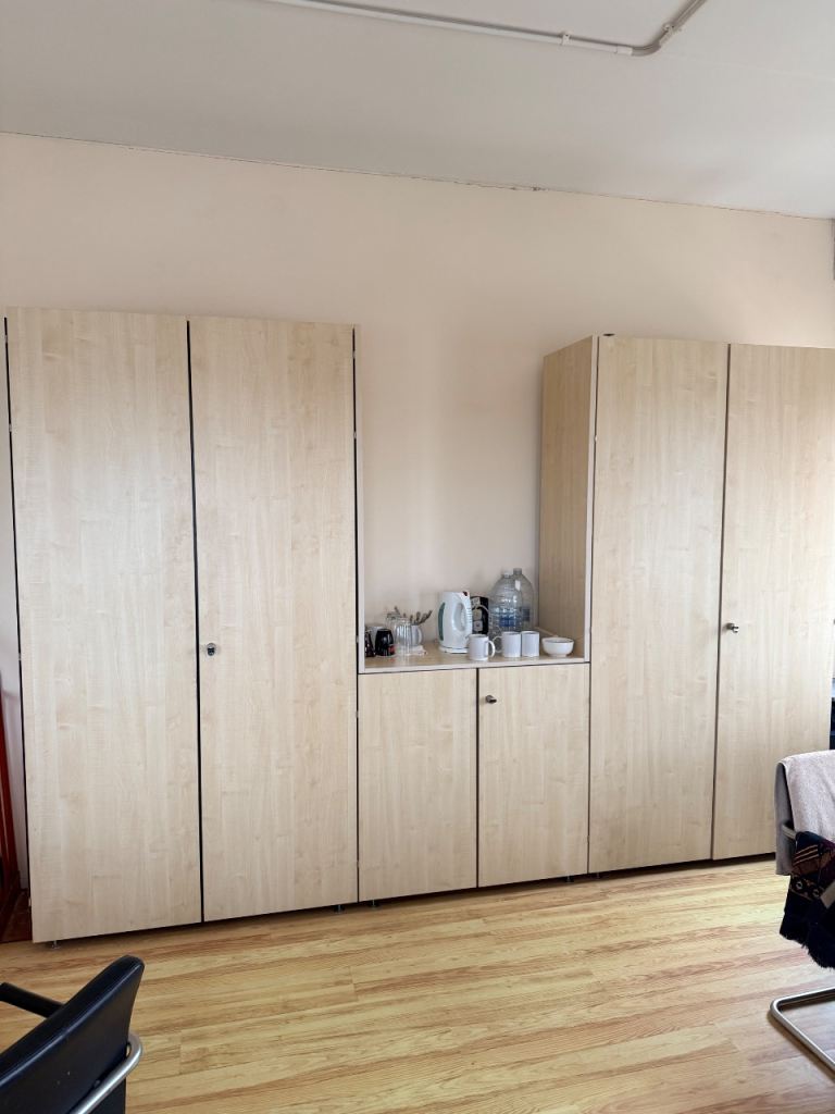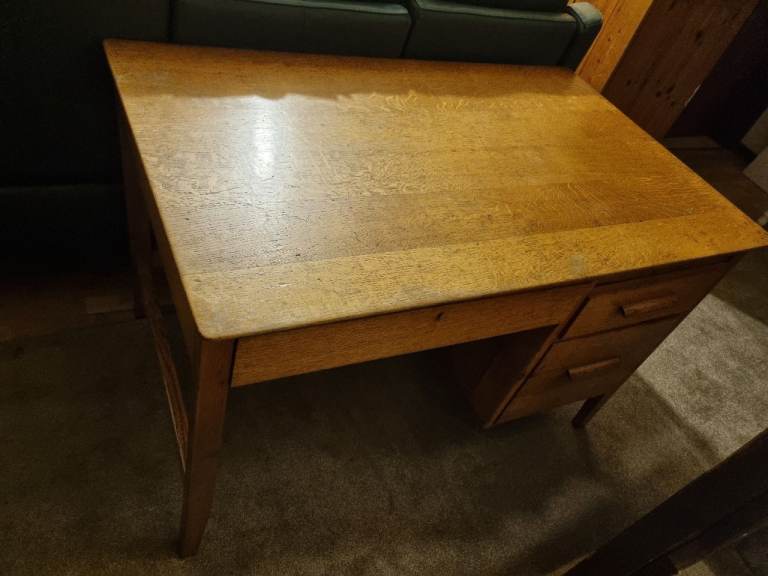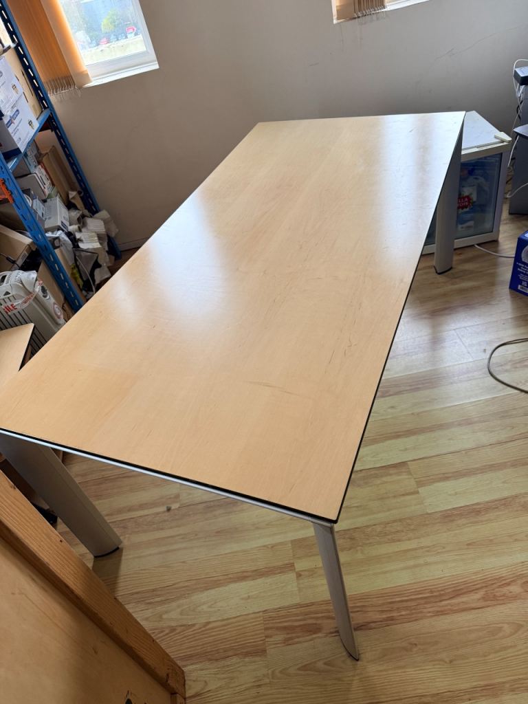 One oak desk 200X100X74h cms and one brown curved desk 210X100X72h cms and three connected filling cabinets 340X60X230h cms in excellent condition. Moving office and need to be collected by 17/02/26.