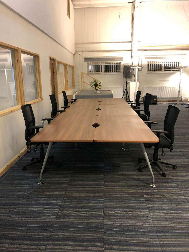 Brown Wood walnut 6 Pod Office Call centre Hot desk Bench Desks Tables