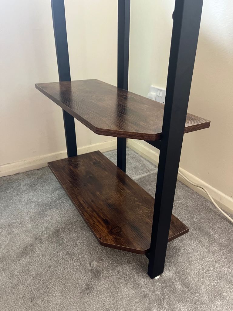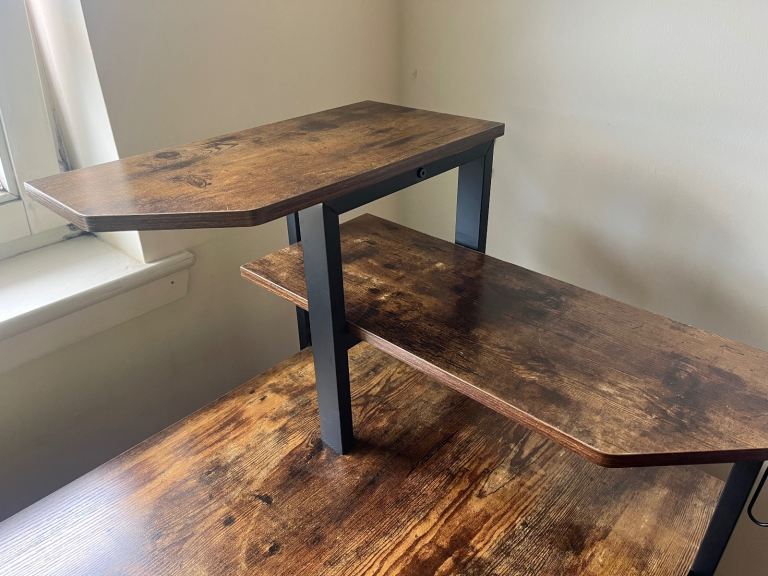 Compact Computer Desk Writing Table Modern Home Office w/ Shelf Rack Storage, Brown and Black Shelf