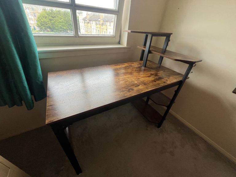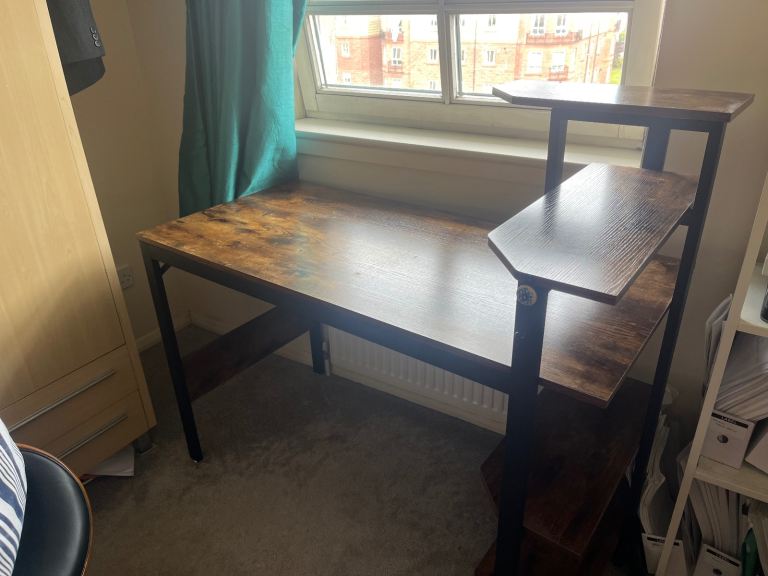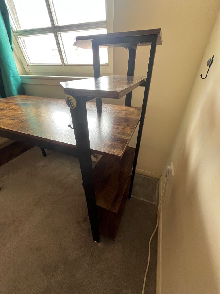 Computer desk with built in shelf storage