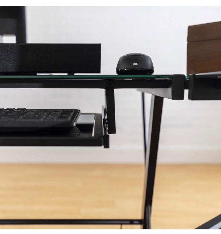 Eden Bridge Designs Gaming Computer Desk Modern Laptop Study Desk with Shelves for Home Office Soreno Metal Corner Desk, Glass, Multi-Colour, 3-Piece