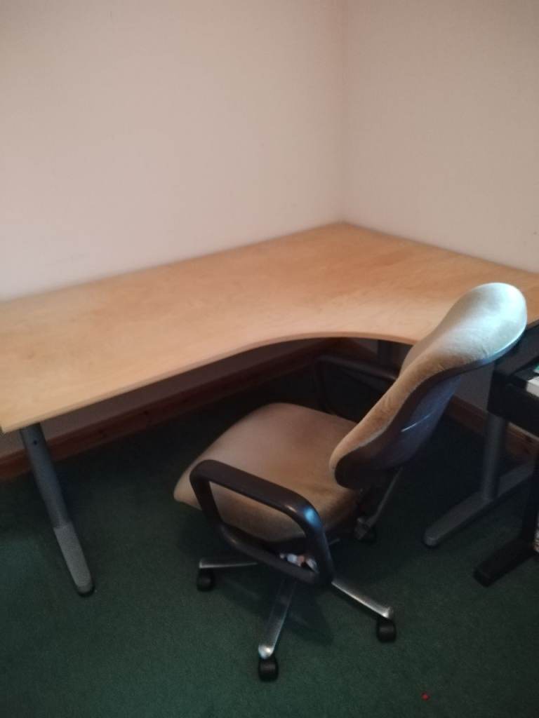 Posting for 11+ yearsCorner Office Desk with Grey Legs – Good Condition
