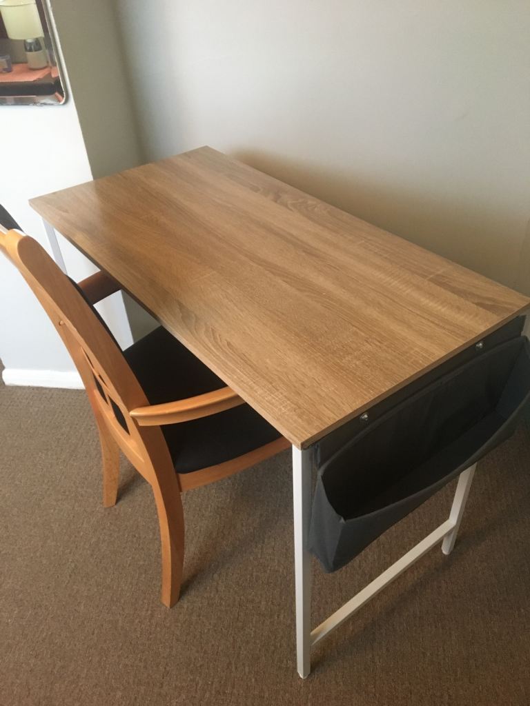 Metal Frame desk with useful pouch at one side plus very comfortable sturdy chair.