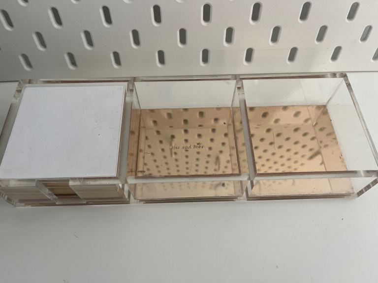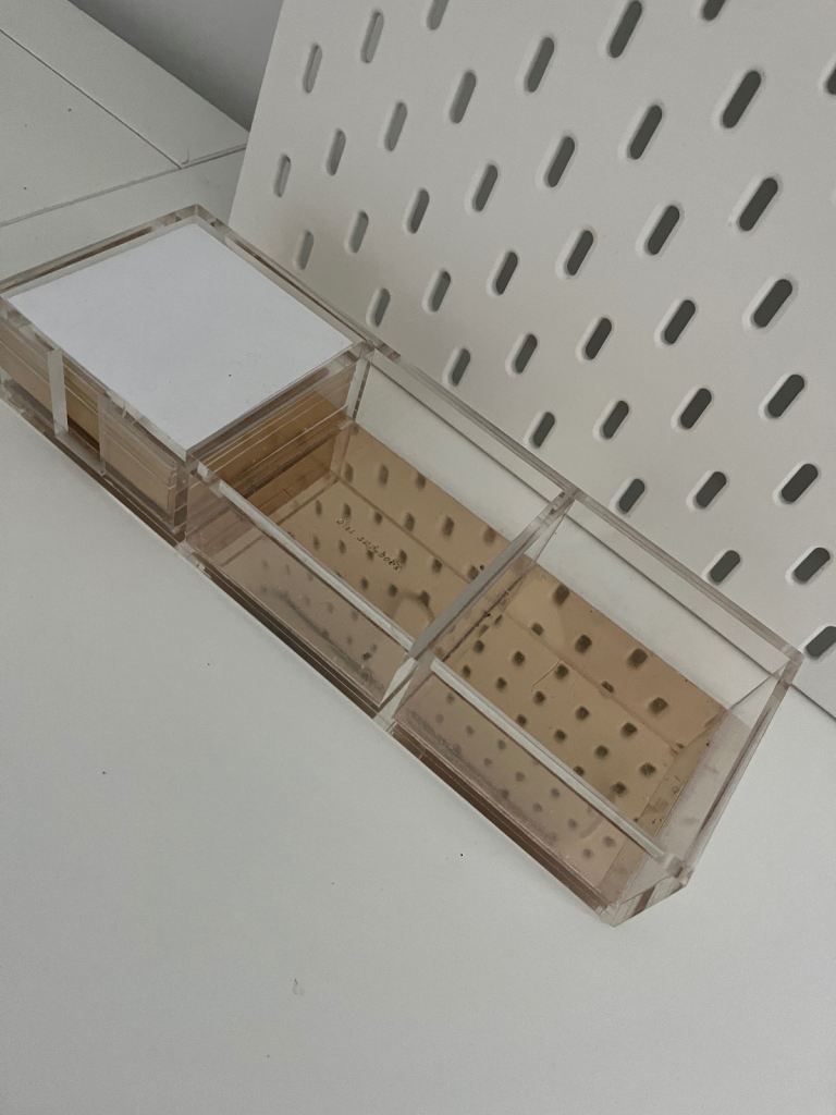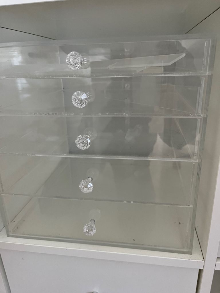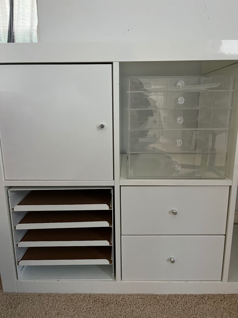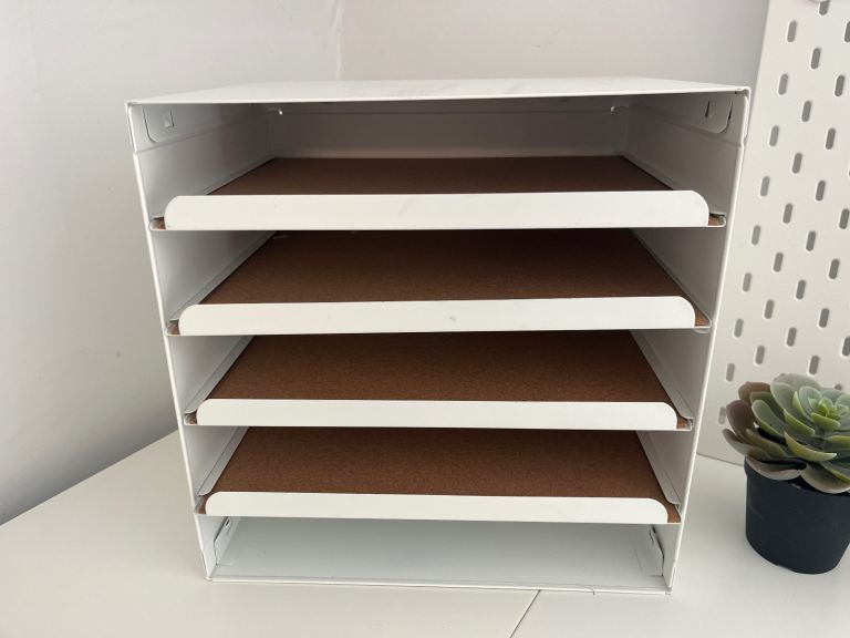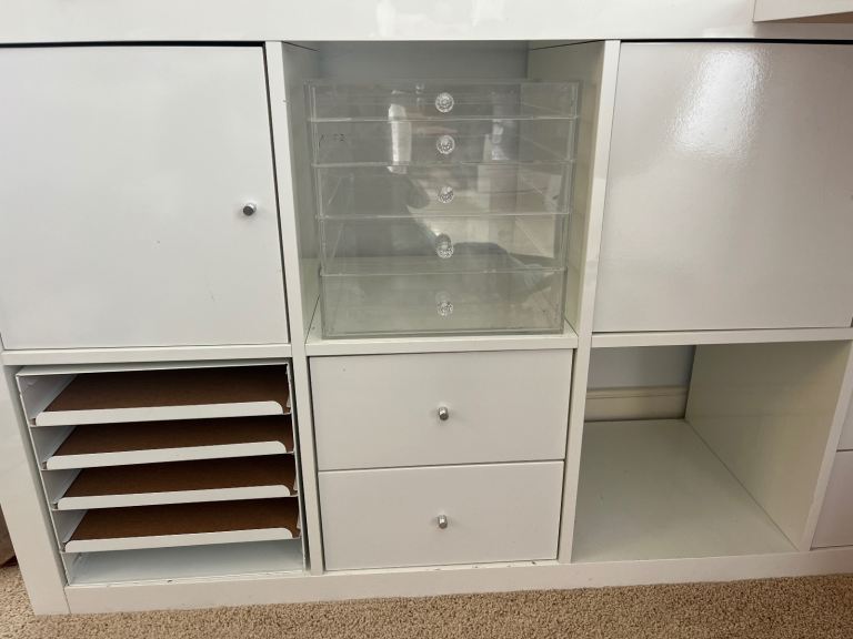 Pretty bundle for a desk or bedroom. Ikea white mini filing/storage cube, Ikea white metal desk board (can clip/ hang things from) plus 2 caddies, Kate Spade perspex/ gold desktop storage with notelets, Fake M&S succulent! Plus gorgeous perspex mini cube drawers with crystal type knobs for storing trinkets/ jewellery etc.