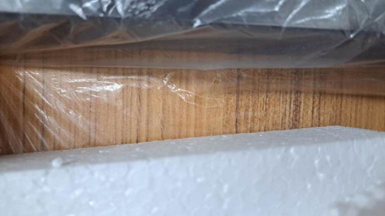 Table flat-packed in box unopened, which is why I've included website screenshots to show what the table looks like assembled. We bought one of these when we were moving house but didn't like it enough to keep it, then several months later our old neighbour told us they had been hanging on to a package for us for a long time! It was this table! Don't know how the extra one got sent, but seemed too late to return it.