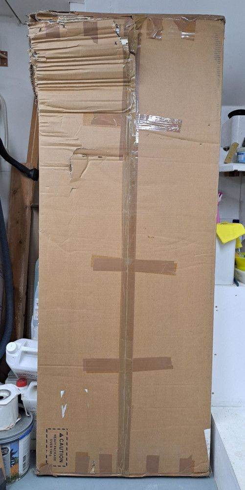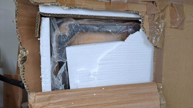 The box has been torn open in one place, but doesn't look like the table has been damaged at all.