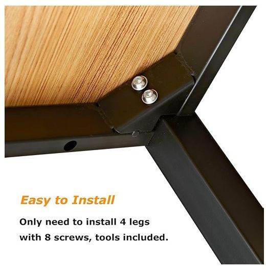 This is a decent table. Not super high quality but good enough. About what you would expect for the price (which was under £100 a few years ago). MDF top with fake woodgrain. Black legs and frame of lightweight metal box section.