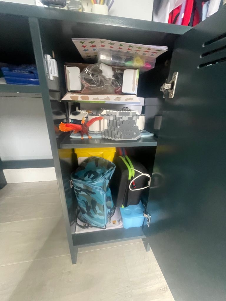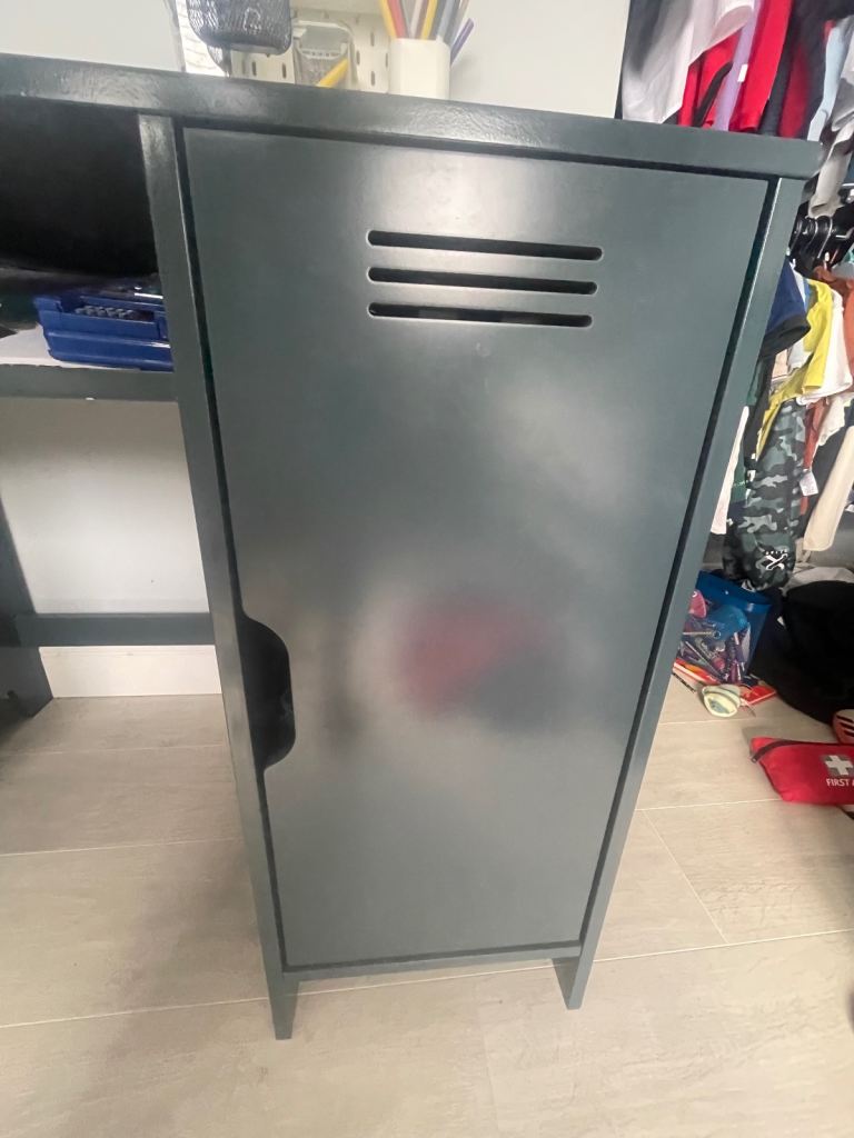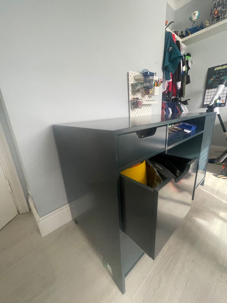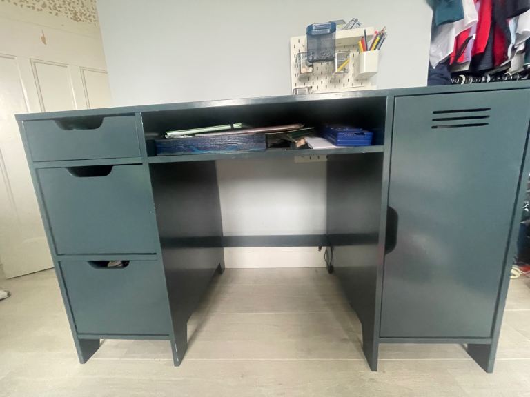 Blue desk in great condition. Wooden and very sturdy. Plenty of storage. Measures;