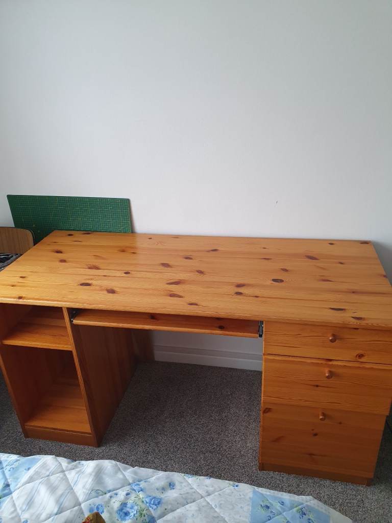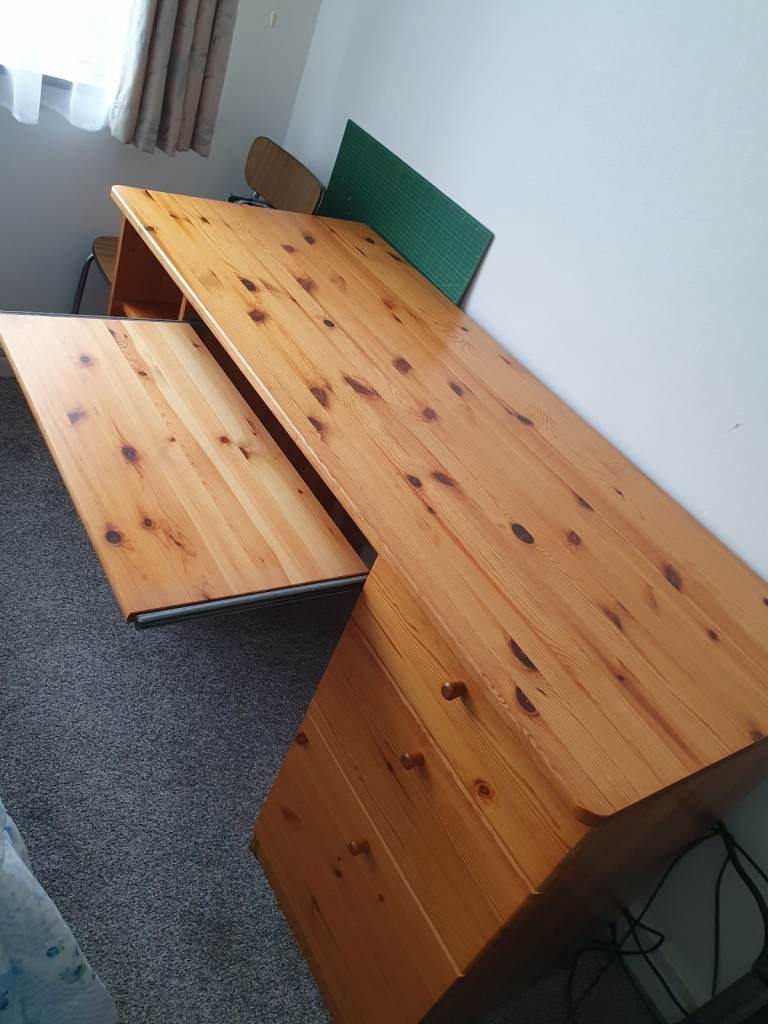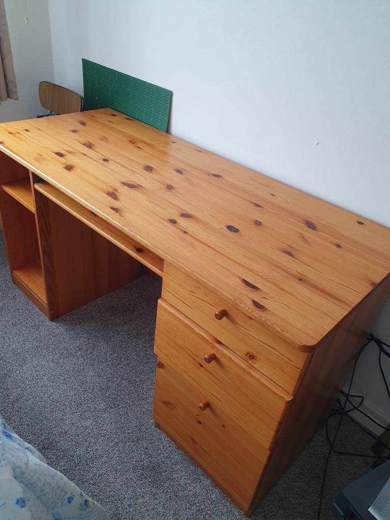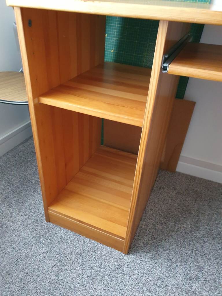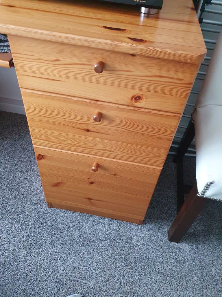 Three deep drawers with a pull out shelf for laptop or keyboard