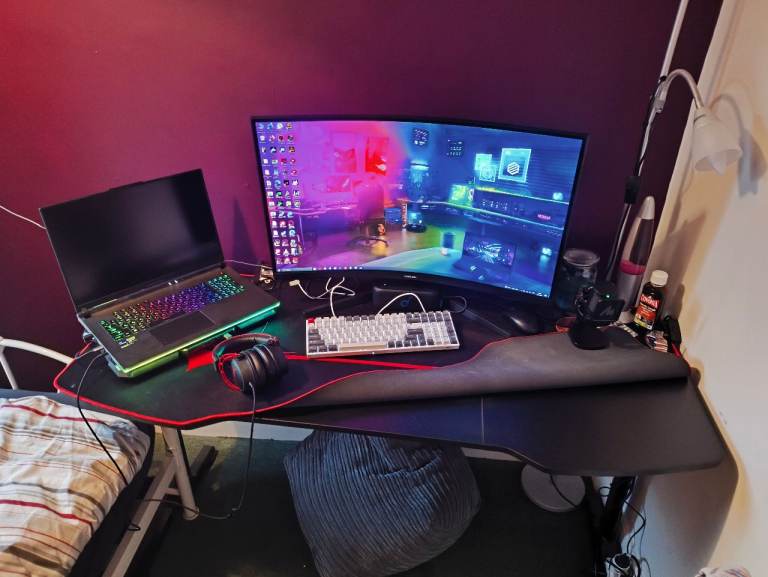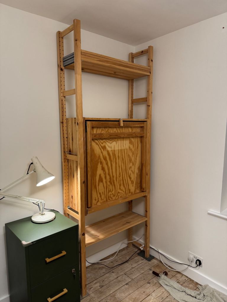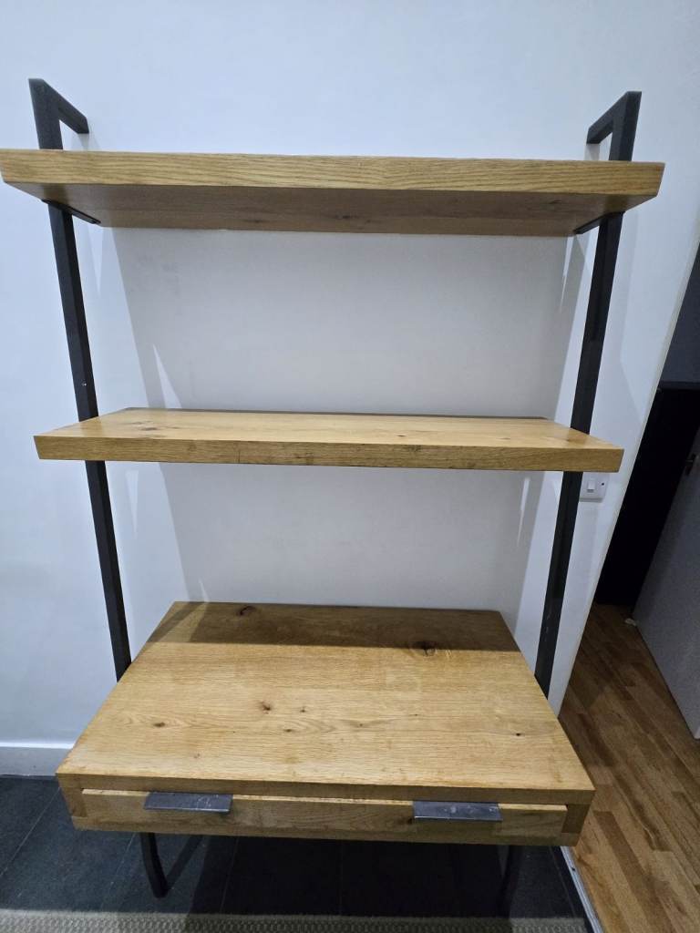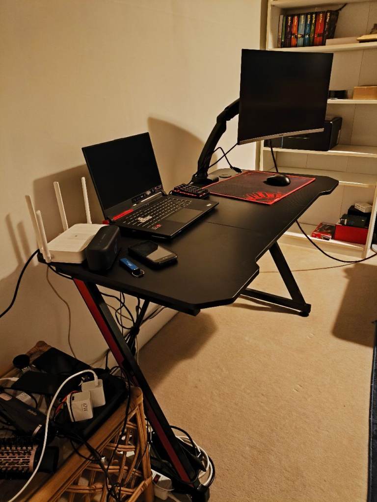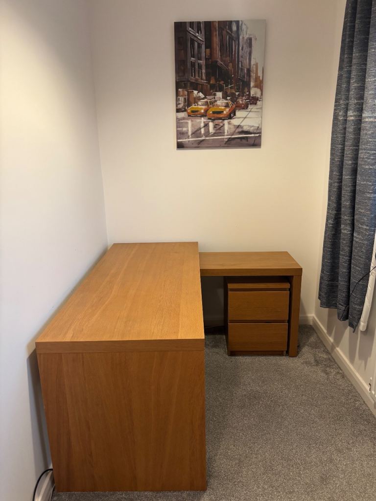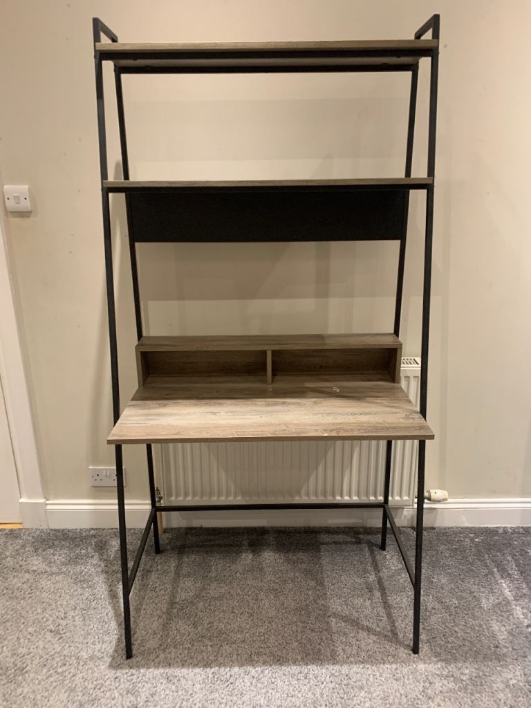 Large computer / office desk. Black in colour. This is long and has various compartments. It has been dismantled so easy to transport and also has the original assemby instructions as well. Dimensions are 1640mm long X 588mm wide X 830mm (at highest point) £10