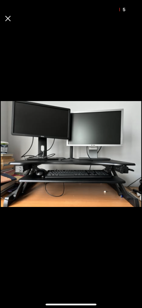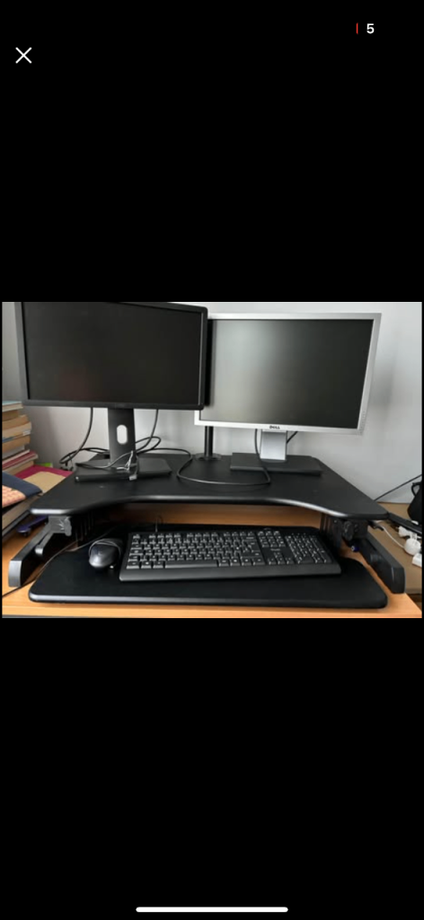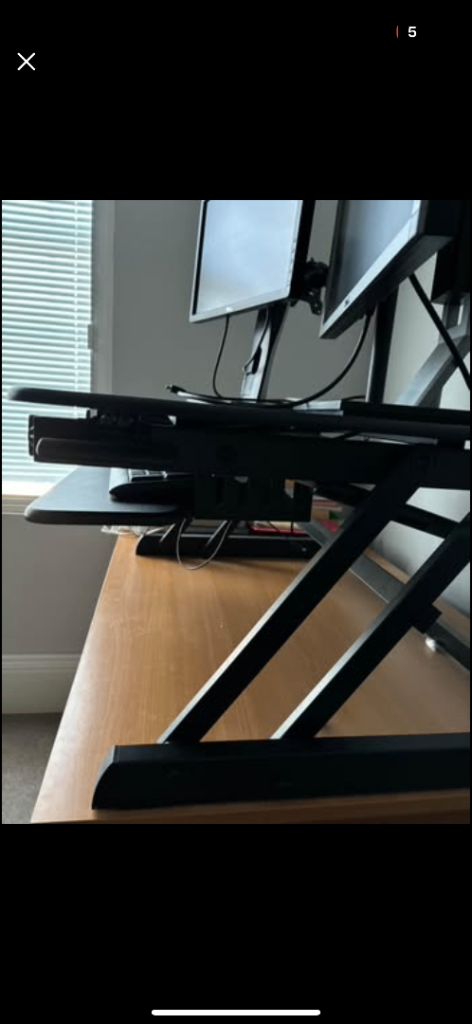 Ergoneer sit-stand desk riser in excellent / mint condition. Perfect for turning a normal desk into a standing workstation. • Large top surface – fits dual monitors • Smooth height adjustment • Keyboard tray included • Strong and stable design • Great for improving posture while working Very lightly used and works perfectly. Desk riser only – monitors, keyboard and other accessories not included. Selling because no longer needed. From a smoke-free home. Open to reasonable offers Collection preferred.