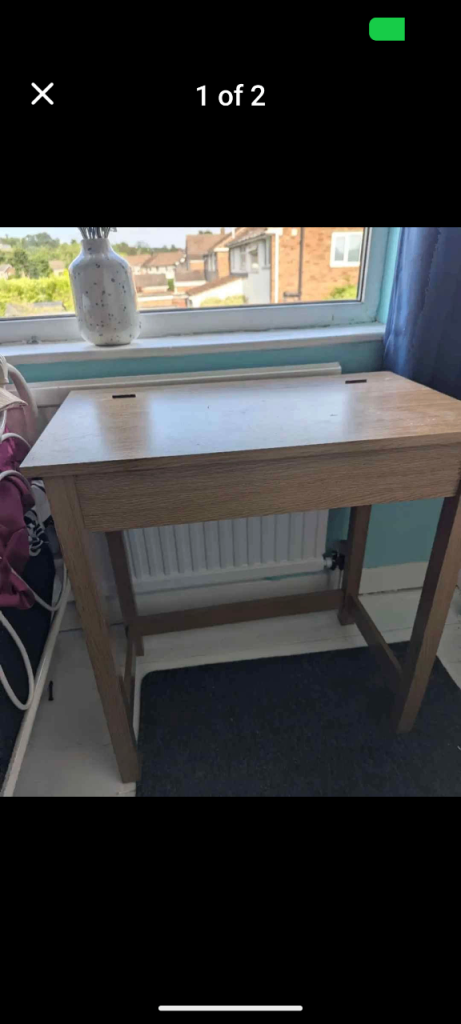 This handsome solid oak desk is looking for a new home office. It's been a reliable workspace for the past five years, primarily used for occasional freelance writing. The desk features a spacious work surface (120cm x 60cm) and two generously sized drawers, ideal for storing stationery and documents. The oak has a lovely warm tone and has been regularly treated with beeswax polish. While it shows some minor signs of wear – a few almost imperceptible scratches – it's in overall excellent condition and ready for immediate use. A robust and stylish addition to any home office.