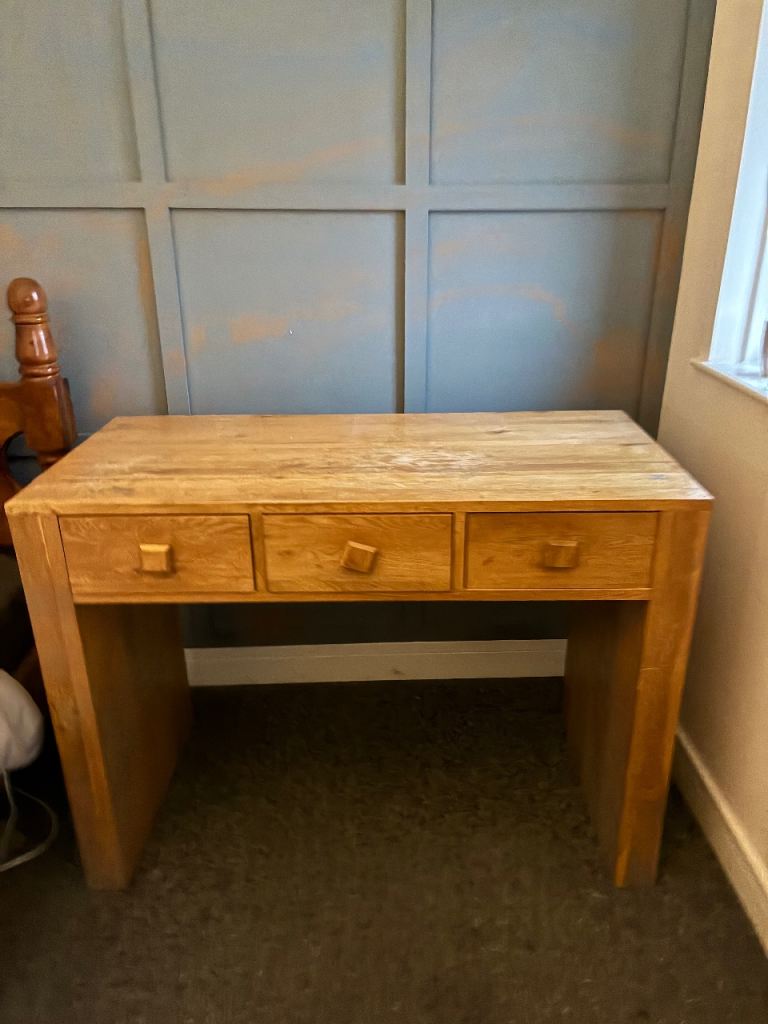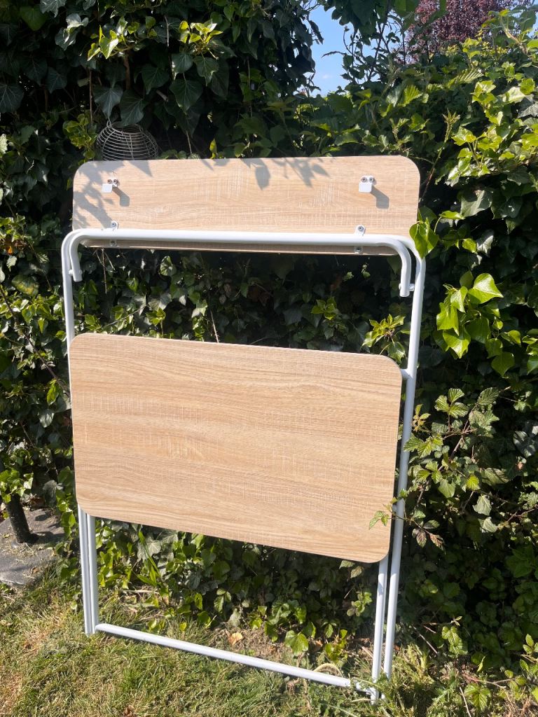 This foldaway work station with a monitor shelf from ‘Costway’ is a contemporary computer desk suitable for adults in a home office or study. The desk is made of beech and iron, standing at 36” tall, 24” depth, and 31.5” wide (It’s 50.5” when folded). It does not require any additional parts for assembly. Perfect for those looking for a sleek and functional workspace solution. I purchased a year ago from Amazon (£48) but they no longer sell it, decided I didn’t want monitor shelf.