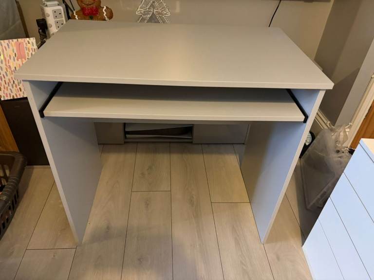Grey desk for computer, laptop, student, with pull-out shelf VGC