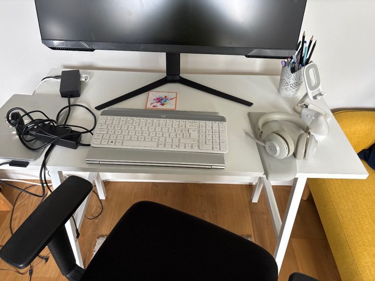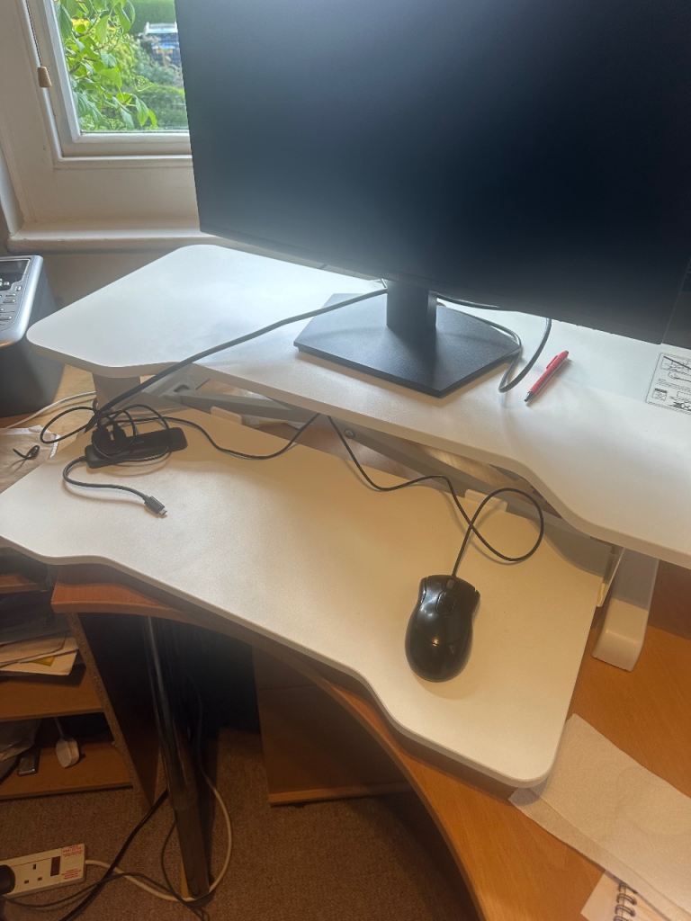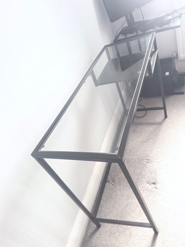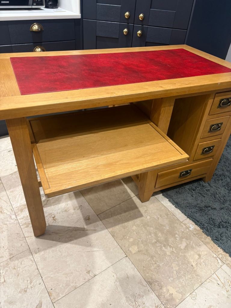 Currently unassembled in storage! Pick up only. Gentle wear and tear on the finish of the top as I have used and loved this desk.