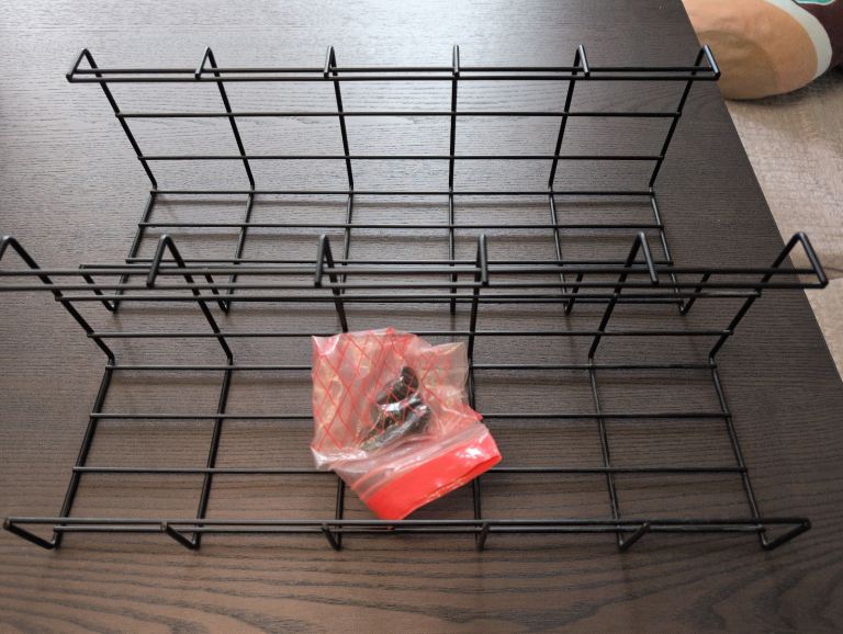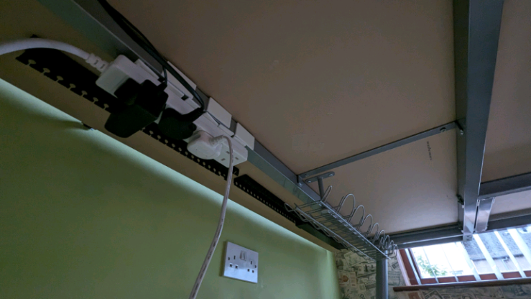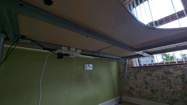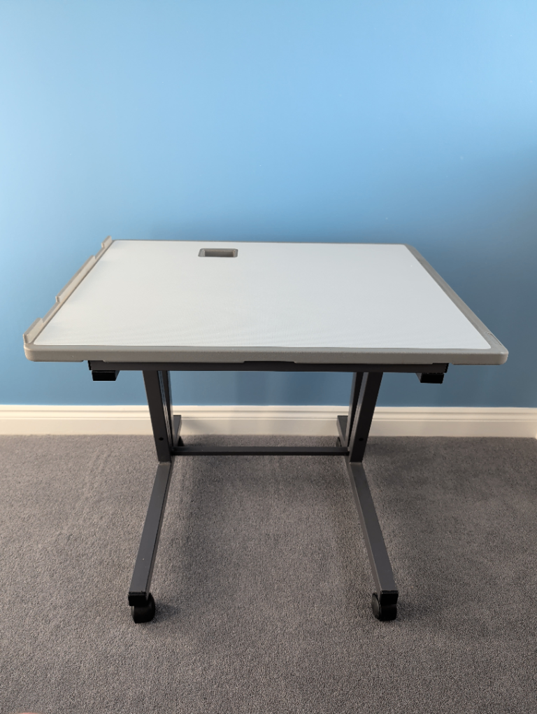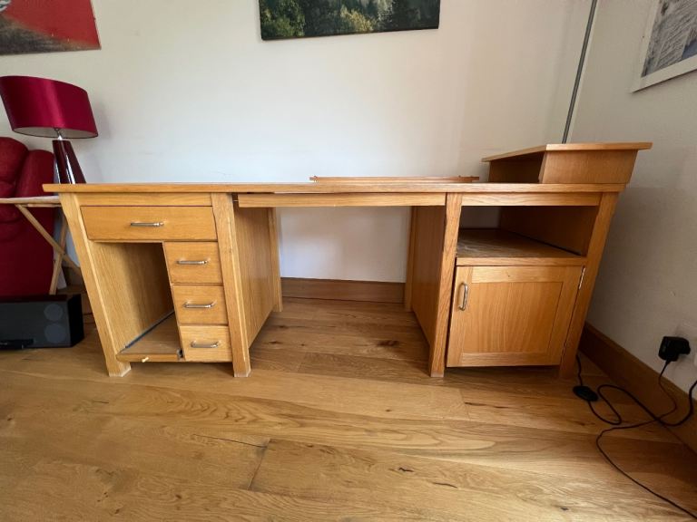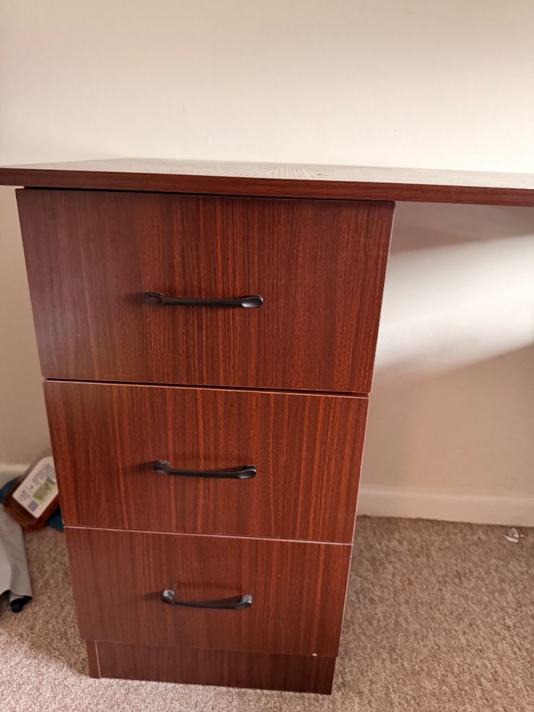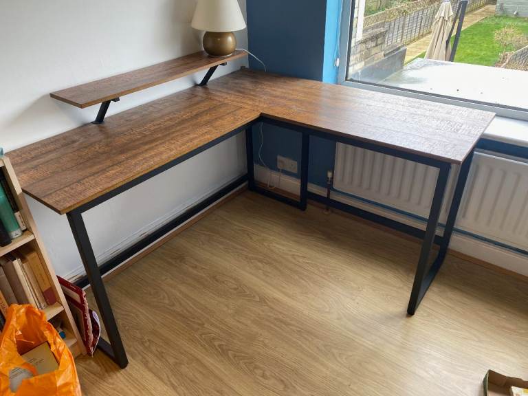 Sturdy desk, legs can be unscrewed for transport.