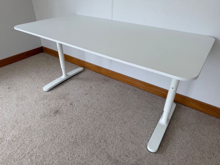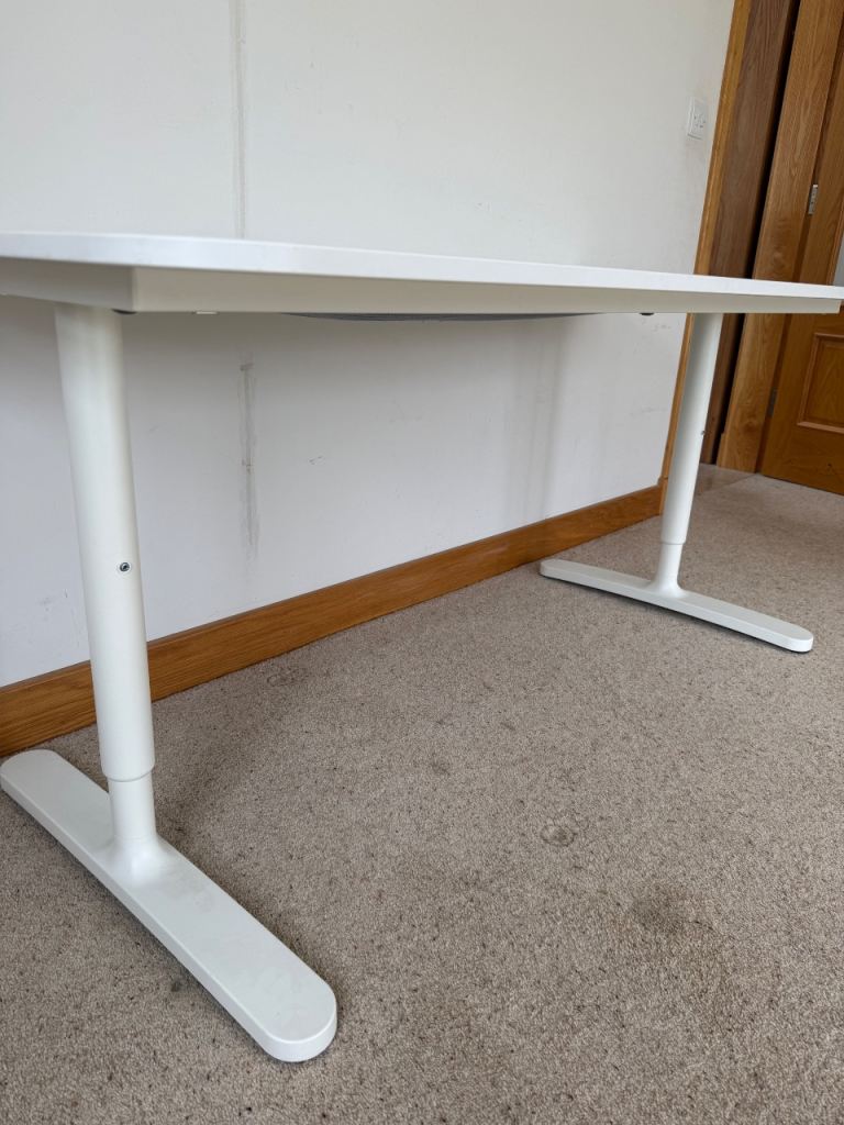 Desk IKEA Bekant Size 160cm x 80cm, Colour White, Metal Legs Adjustable Height Excellent Condition.