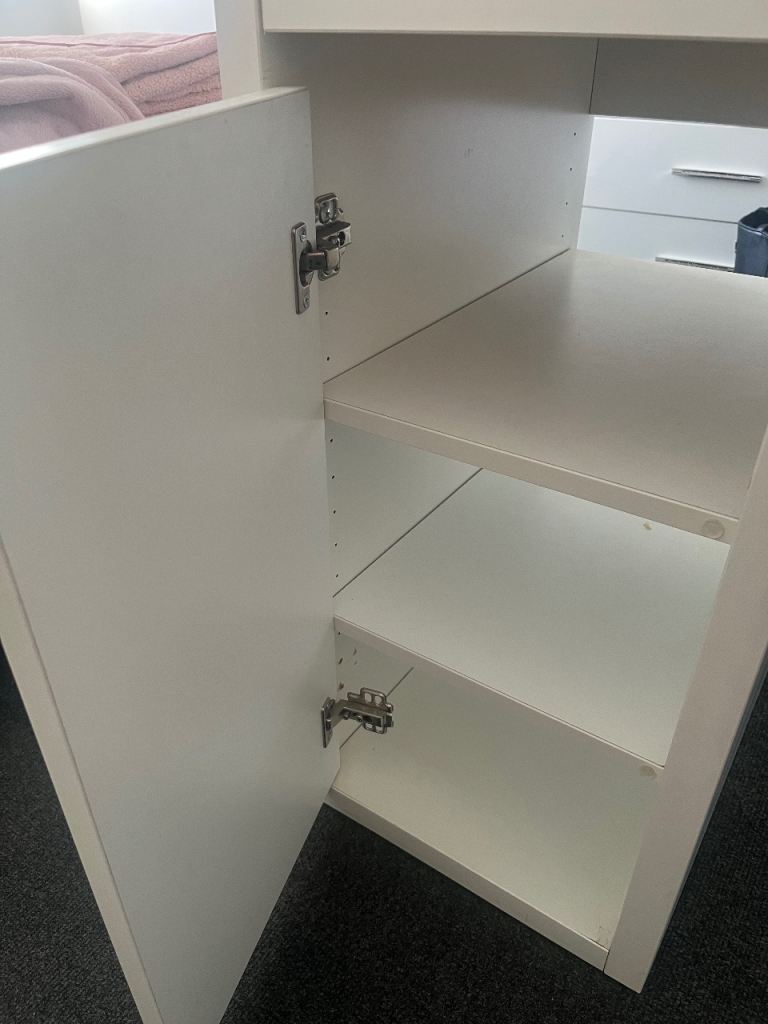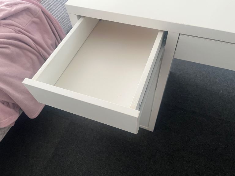 Showing some signs of wear and tear. One of the draw brackets has come loose as shown in the picture but is repairable. Some marks on the table top (tried to show this in picture 7 and if you zoom in) and inner draw. All shown in pictures. Still in good usable condition though. Plenty or wear left in it.