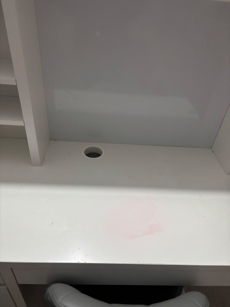 White ikea desk with shelf’s and cupboards space,has mark as shown can easily come off.