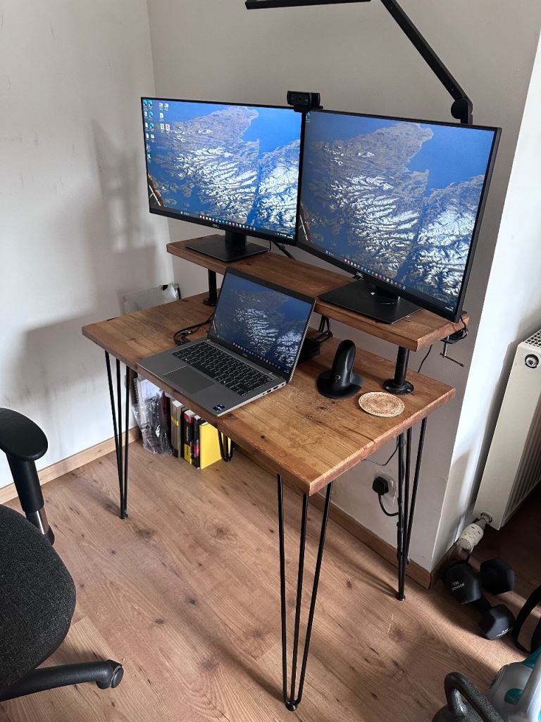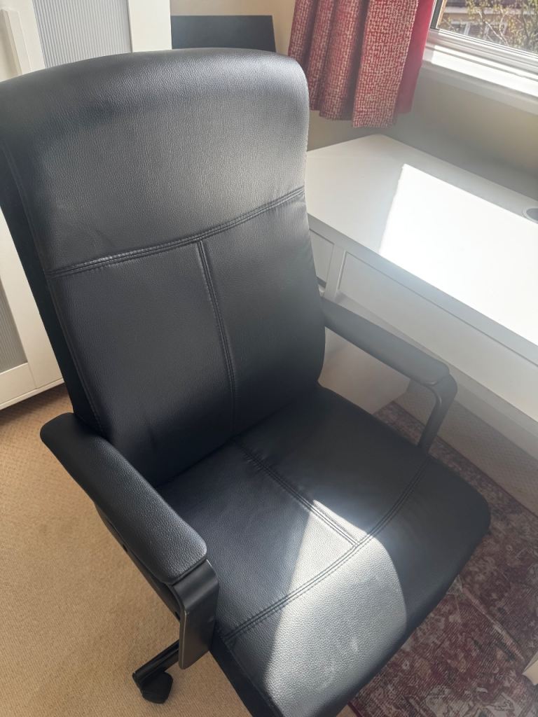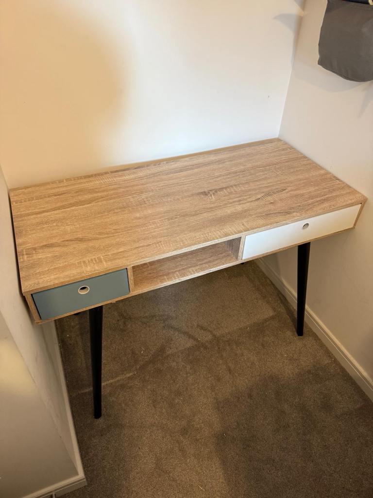 We give an Ikea GALANT desk, width 160cm, depth 80cm, adjustable height. Collection only, from Bathwick (we can try to help by removing the legs from the desktop for you before you come). A few marks on the top, a bit of discoloration on the righthand side of the top. Good condition otherwise.