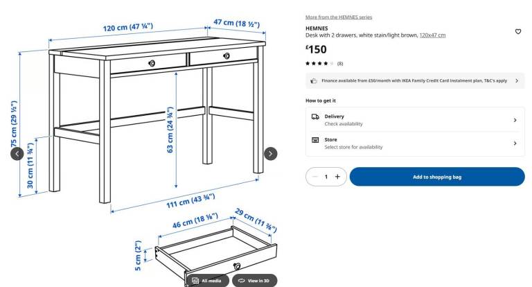 IKEA Hemnes Desk in white, solid wood.