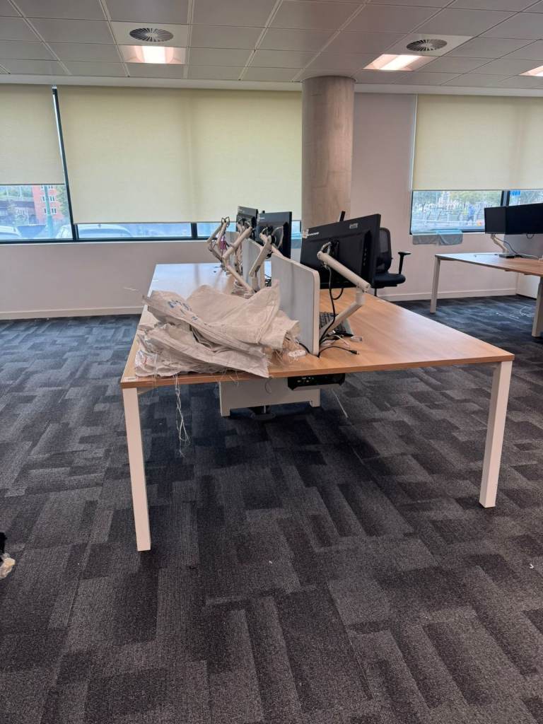 Straight desks, corner desks, wave desks all for sale in beech and light brown colour.