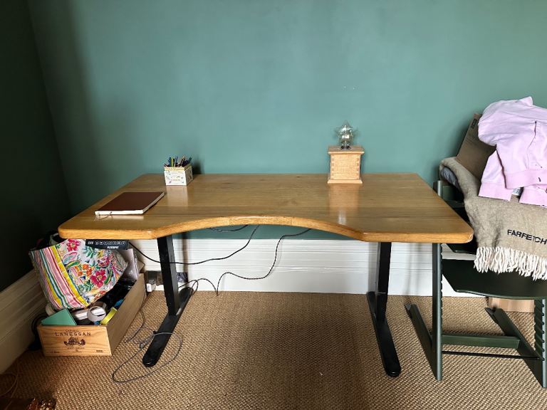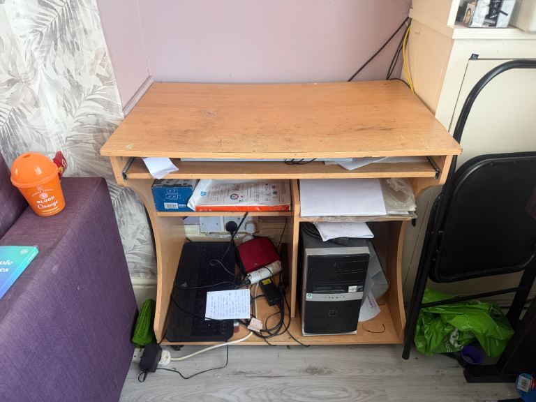 Straight desks, corner desks, wave desks all for sale in beech and light brown colour.