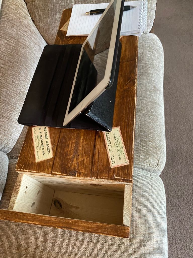 This is a handmade lap desk/ tray. It has been made entirely from reclaimed wood it has been given a rustic look, showing off all the wonderful grain in the wood.