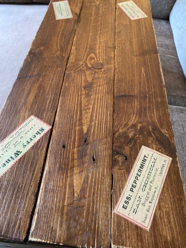It has been given a little twist with vintage labels that go with it ages look