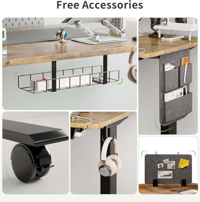 User-friendly Office Design - 6 additional accessories to perfectly solve office tidiness. The message board records important issues; the side storage bag/hook/cable management tray/invisible drawer create a more tidy and comfortable environment for you; the universal casters rotate 360 degrees and move freely.
