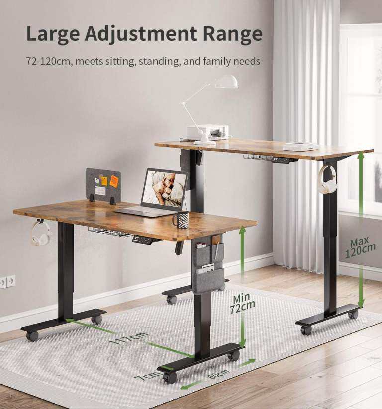 Ergonomic System -The height range of the standing desk is 72-120 cm; (large) Desktop size: 120*60 cm; One-click to alternate between sitting and standing instead of traditional fixed-height desks.