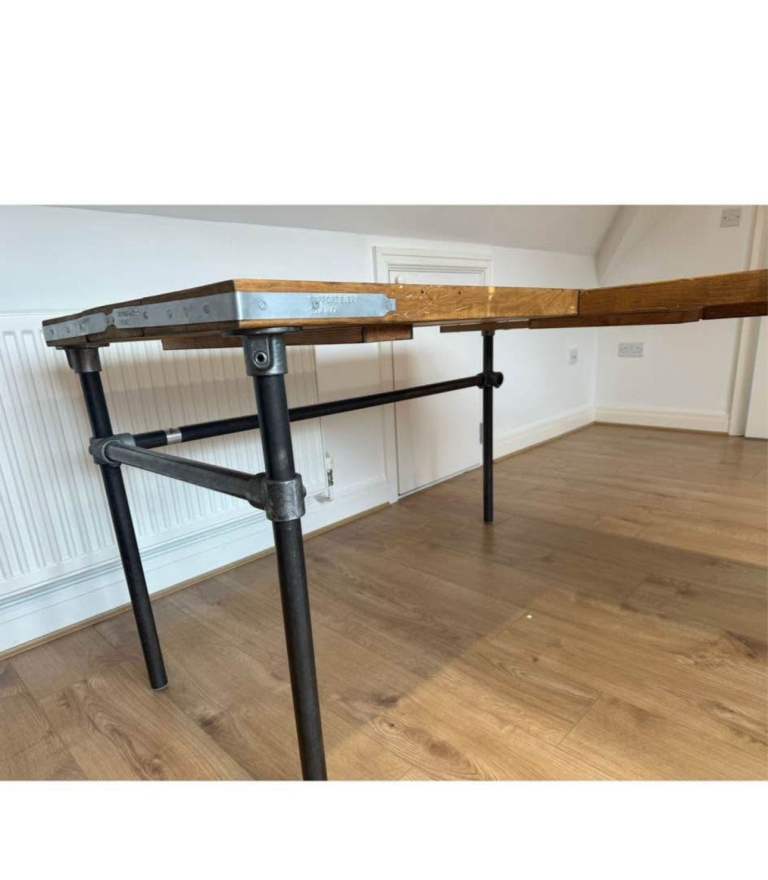 Office desk made from reclaimed wood and metal. Bought from Etsy excellent condition collection from lisvane Cardiff by reservoir . Dismantled ready to go