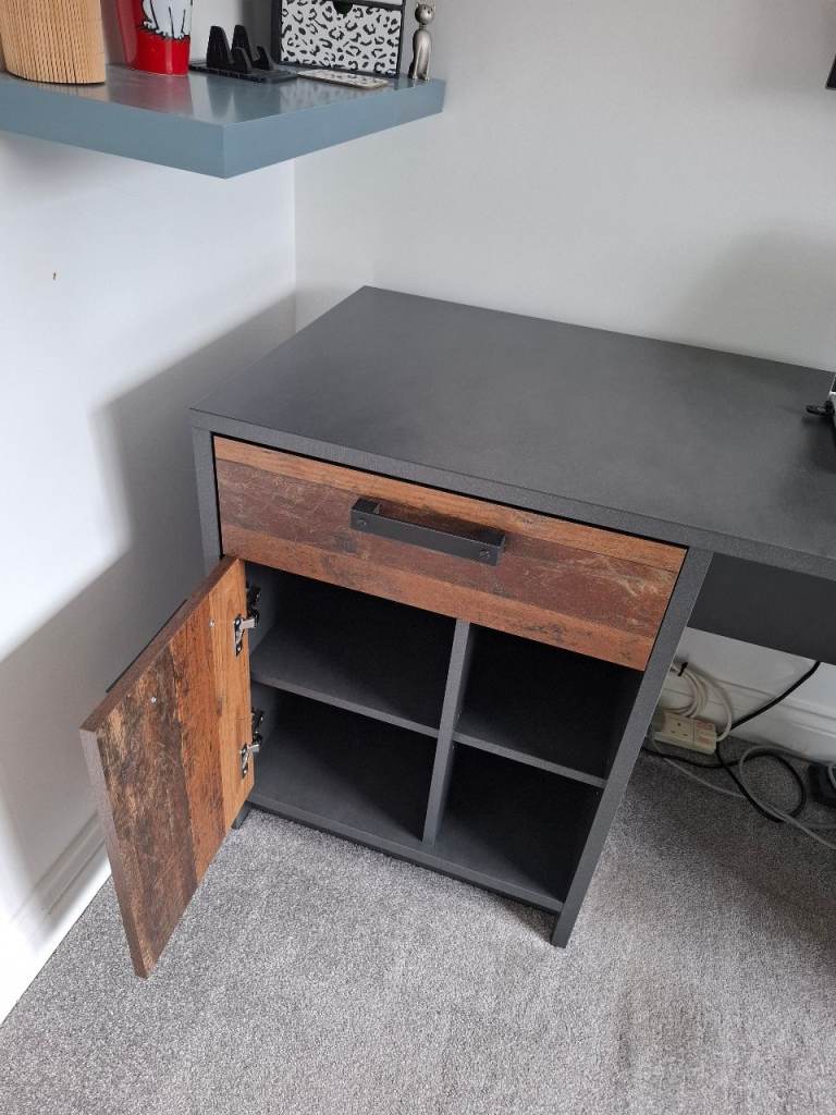 Nubi one drawer pedestal desk with cupboard and storage shelves. Bought from Argos 12 months ago. This item is currently being sold in Argos at £115. Although used,