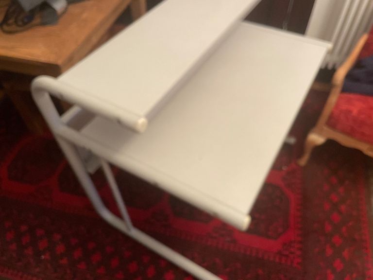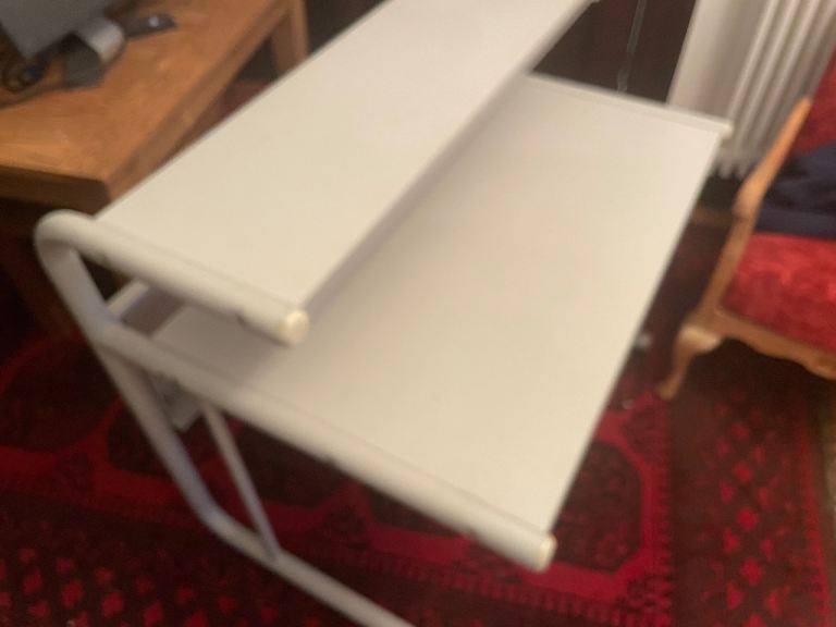 Great desk with integrated high level shelve for computer screen etc .
