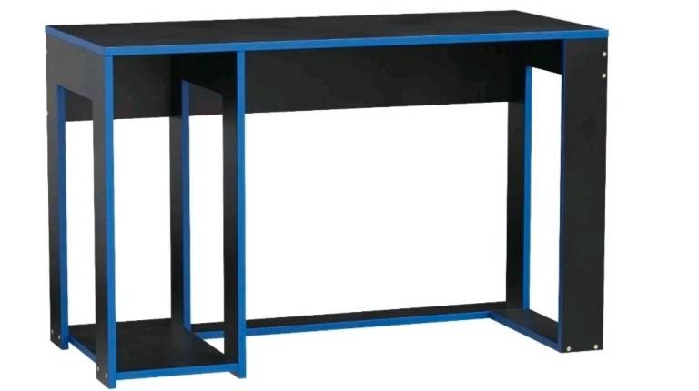 Ryker Gaming Desk Table, Black With Blue Trim Gaming Desk Computer Table Workstation Laptop PC